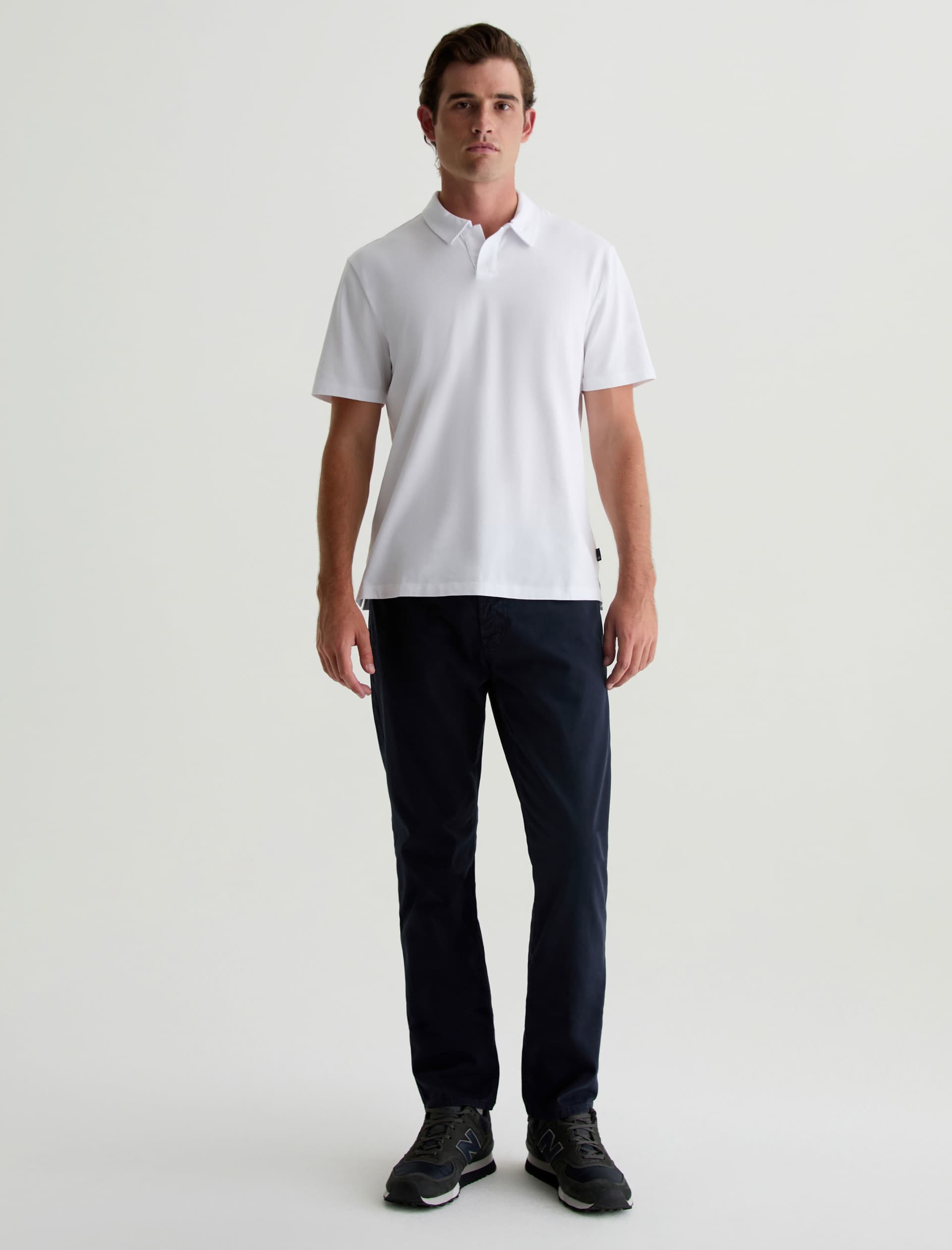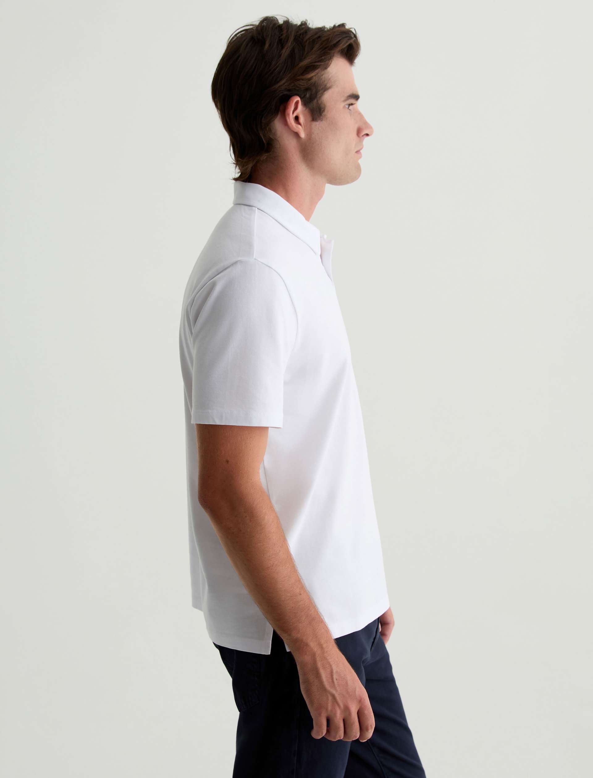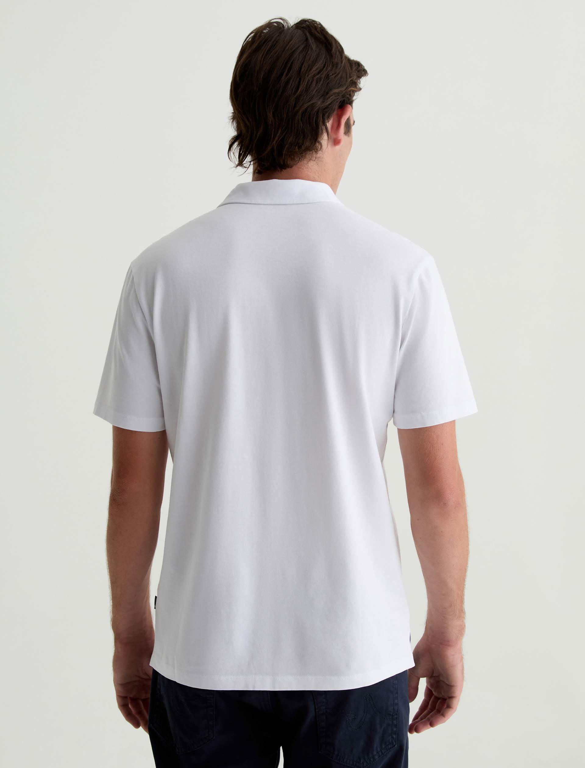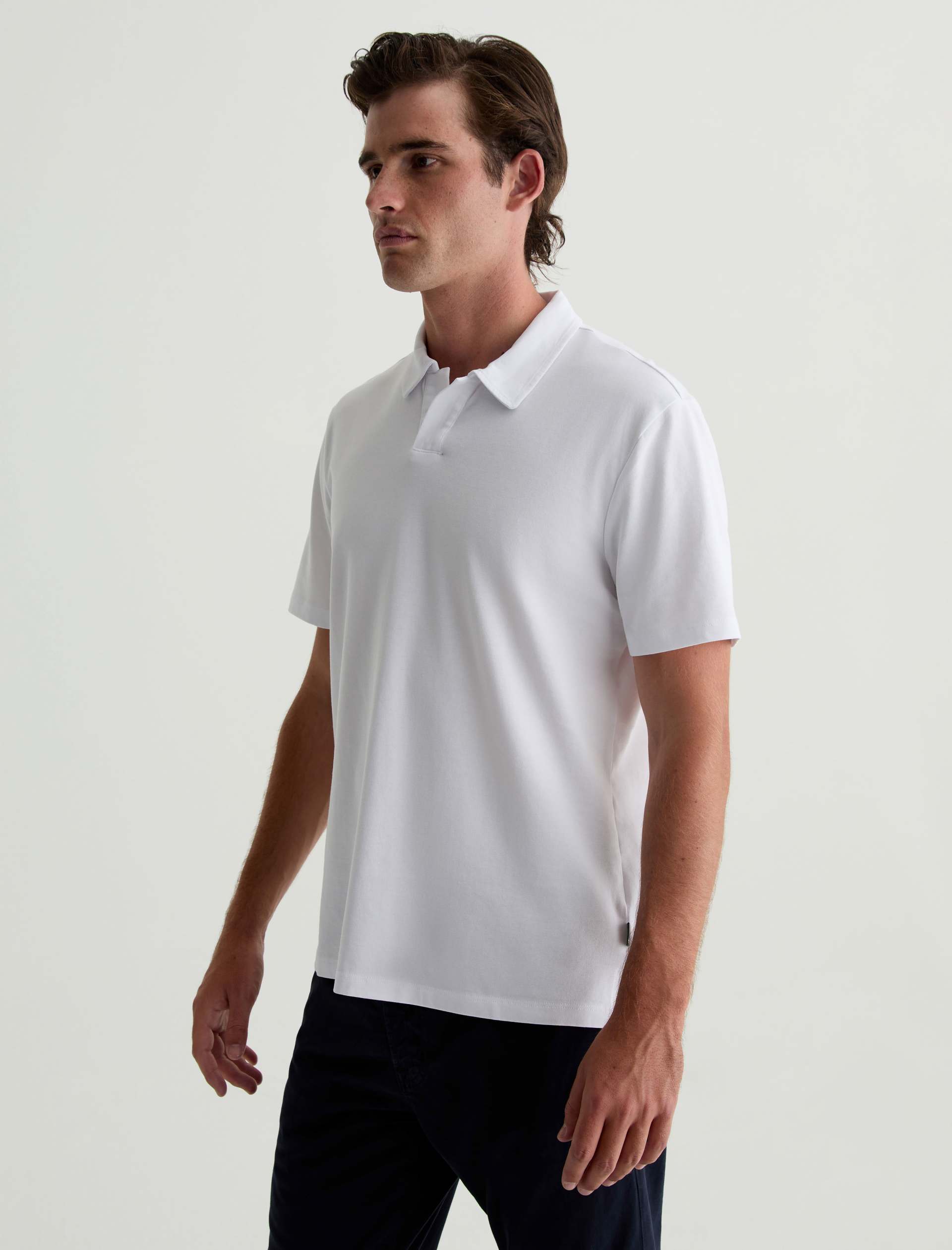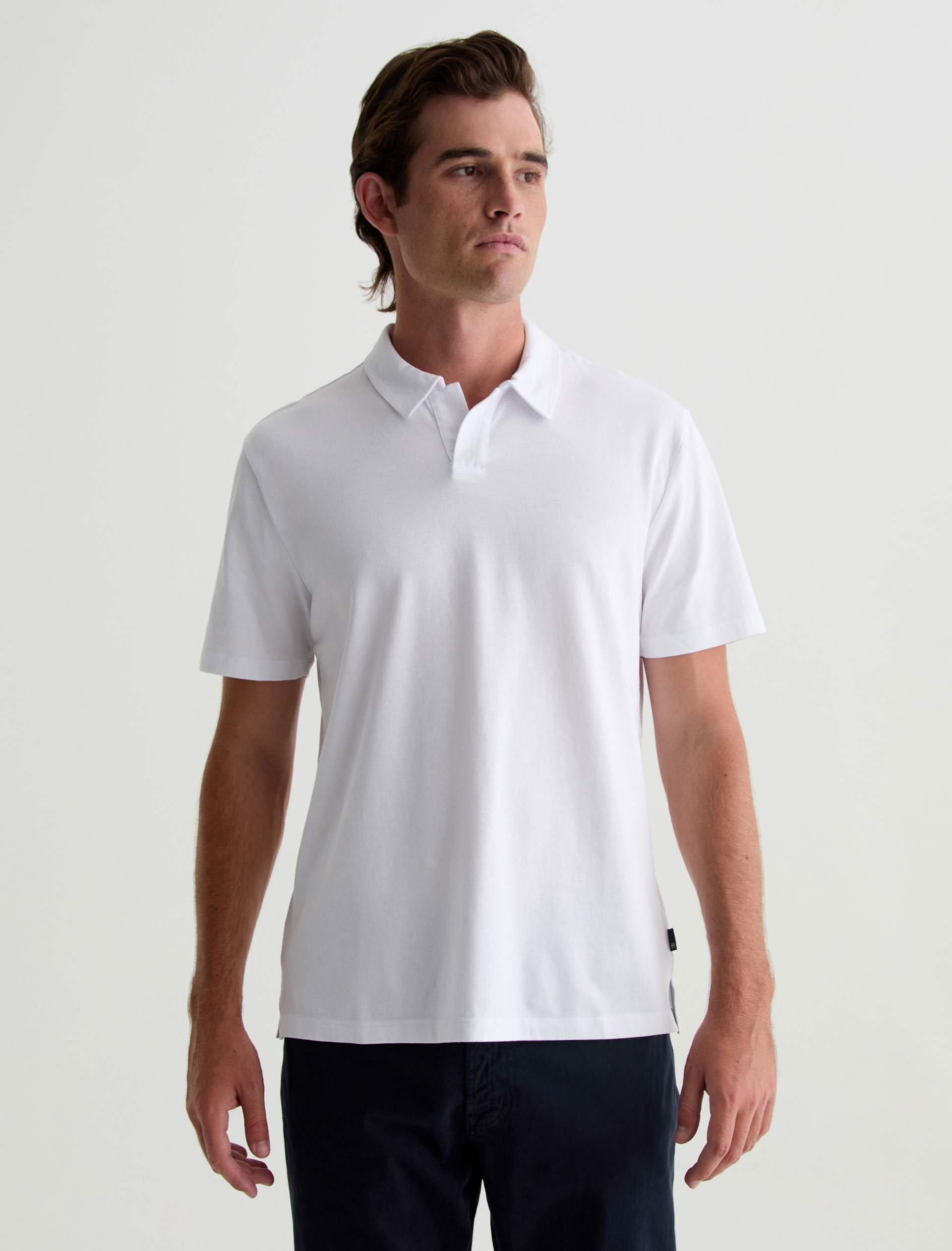 The Bryce Johnny Collar shirt is a classic short-sleeve polo tee with a relaxed neckline and pointed collar. Crafted from our Light Cotton Jersey in white, it’s soft and easy to wear—the perfect companion to a pair of jeans or something a little more tailored.