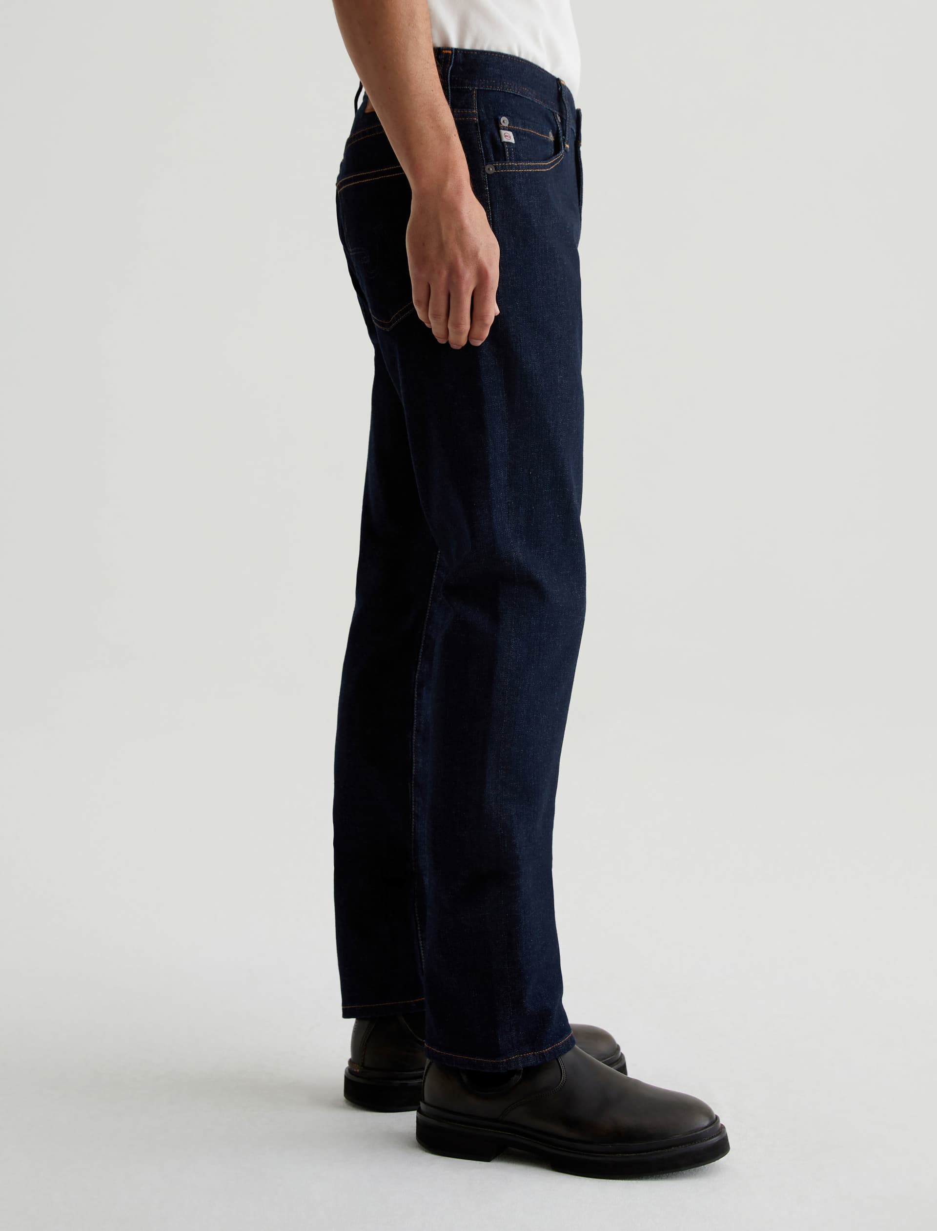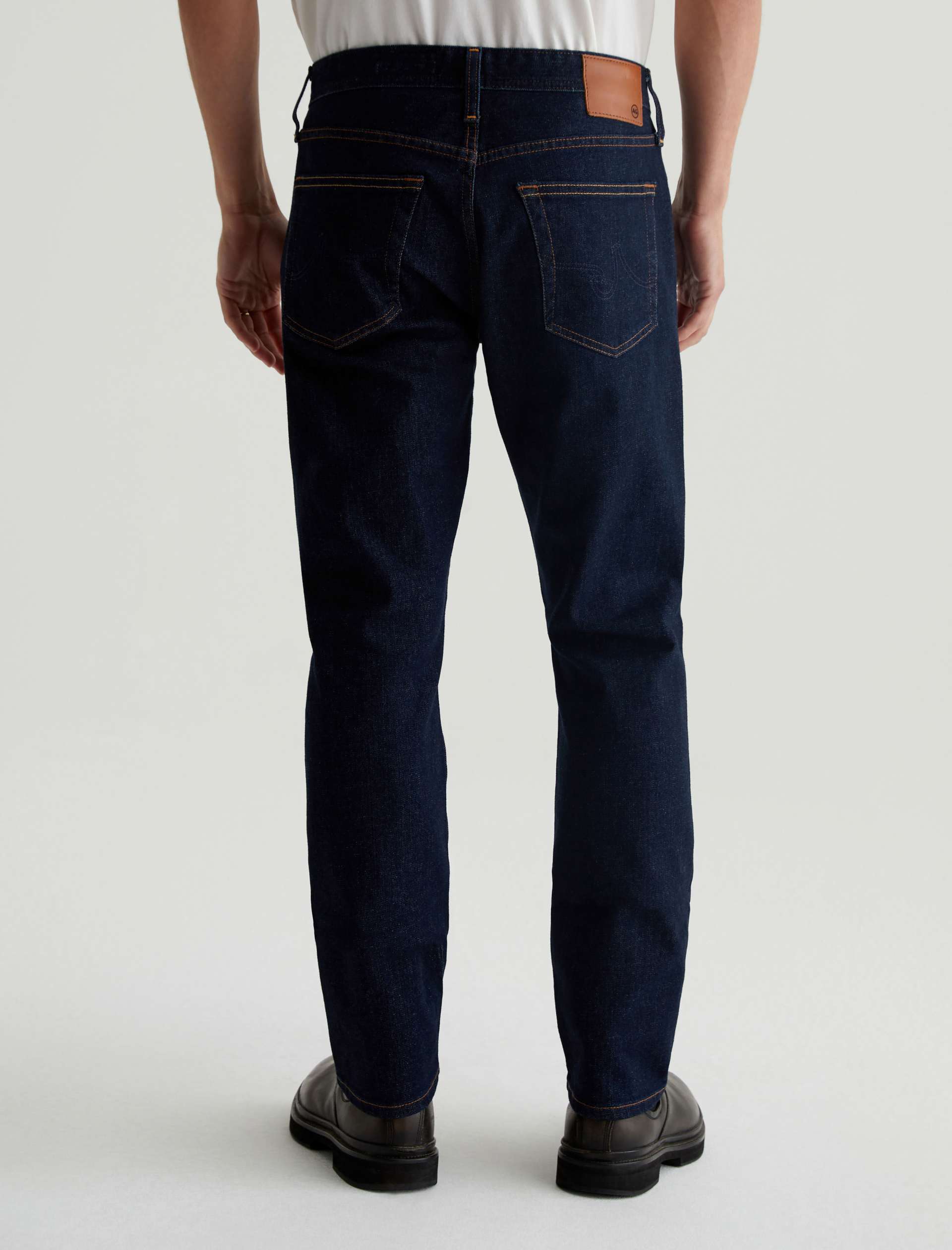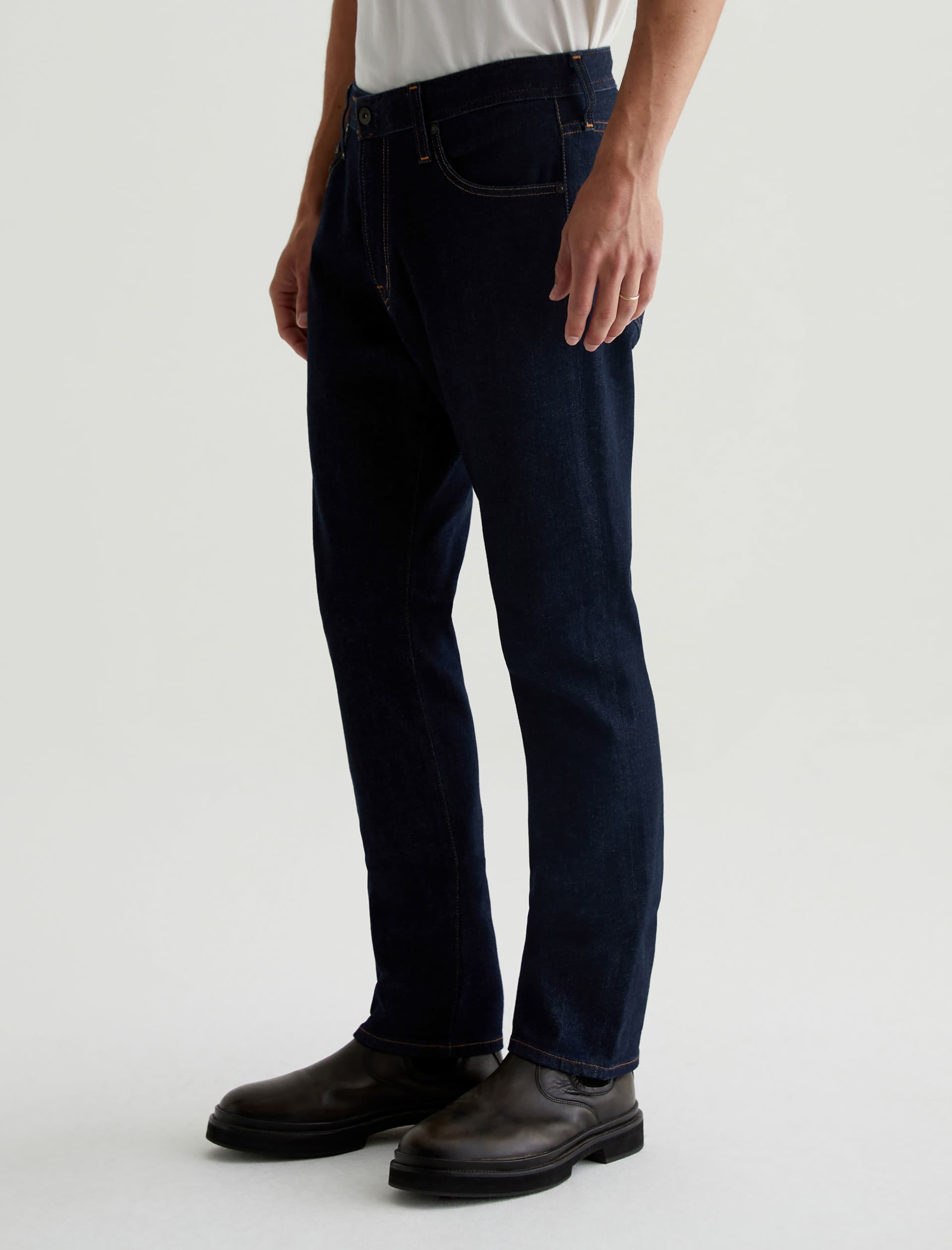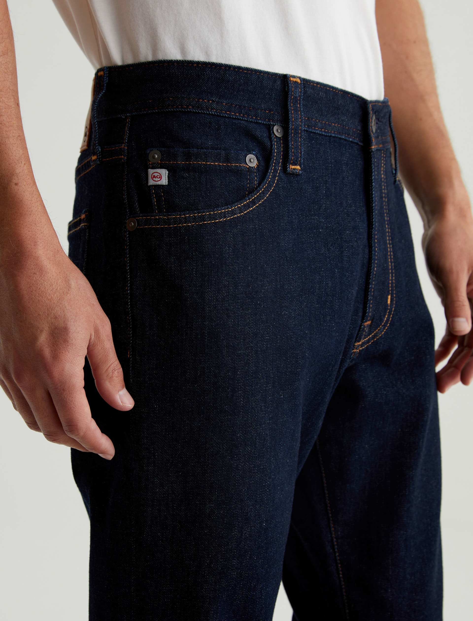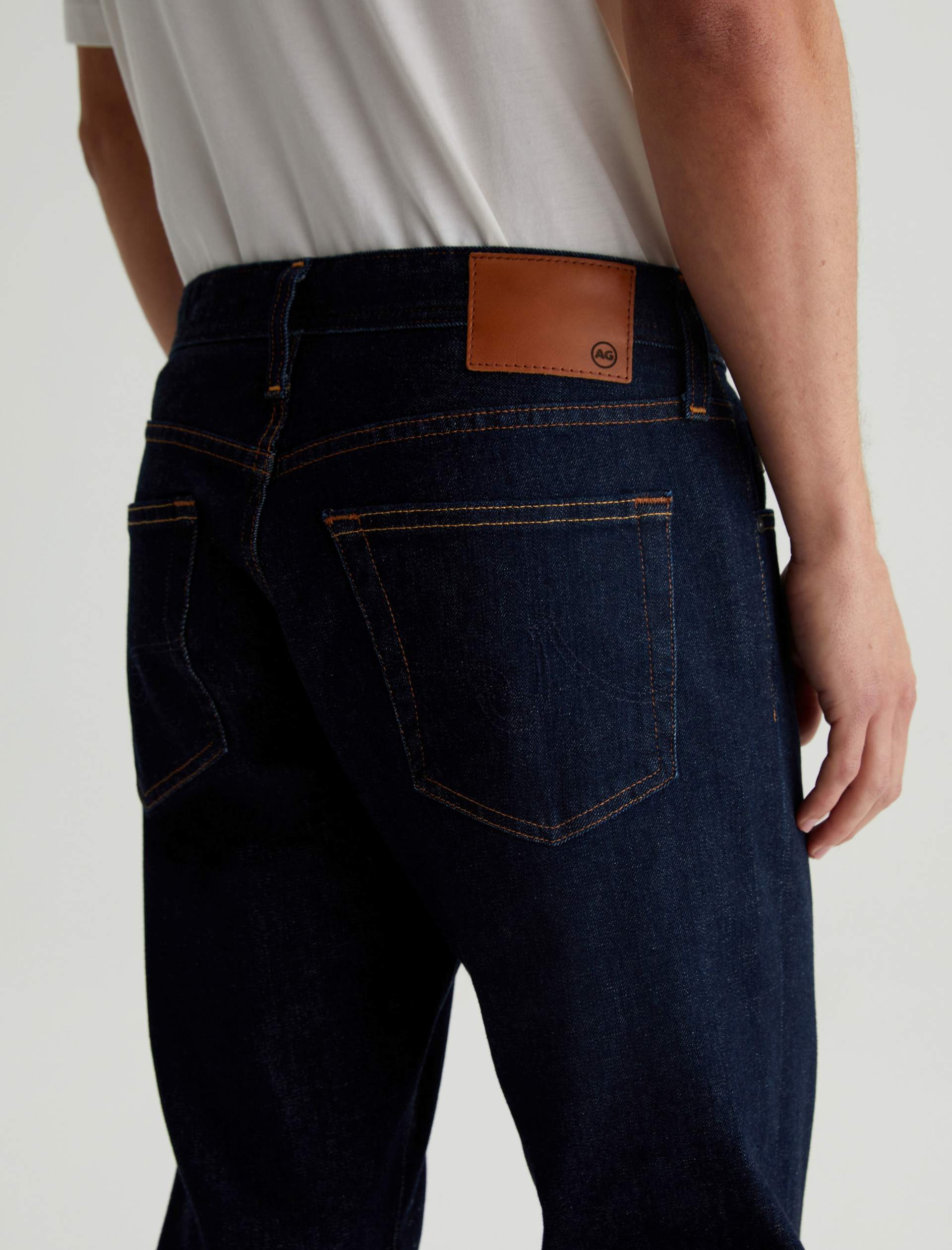 Everett is a slim straight jean for men featuring a dark denim wash—cut in a comfortable mid-rise waist with a straight fit that’s relaxed from hip to the knee before slightly tapering at the leg opening. This men’s slim straight jean is designed in 11.5 oz. 360° Denim.