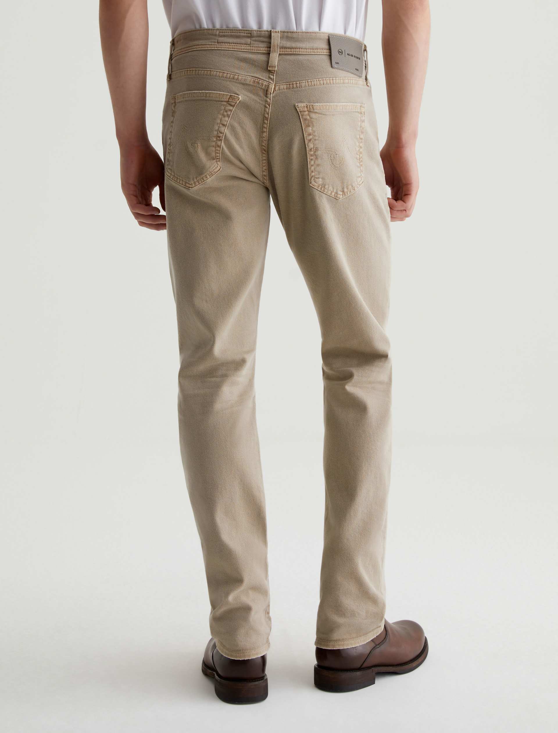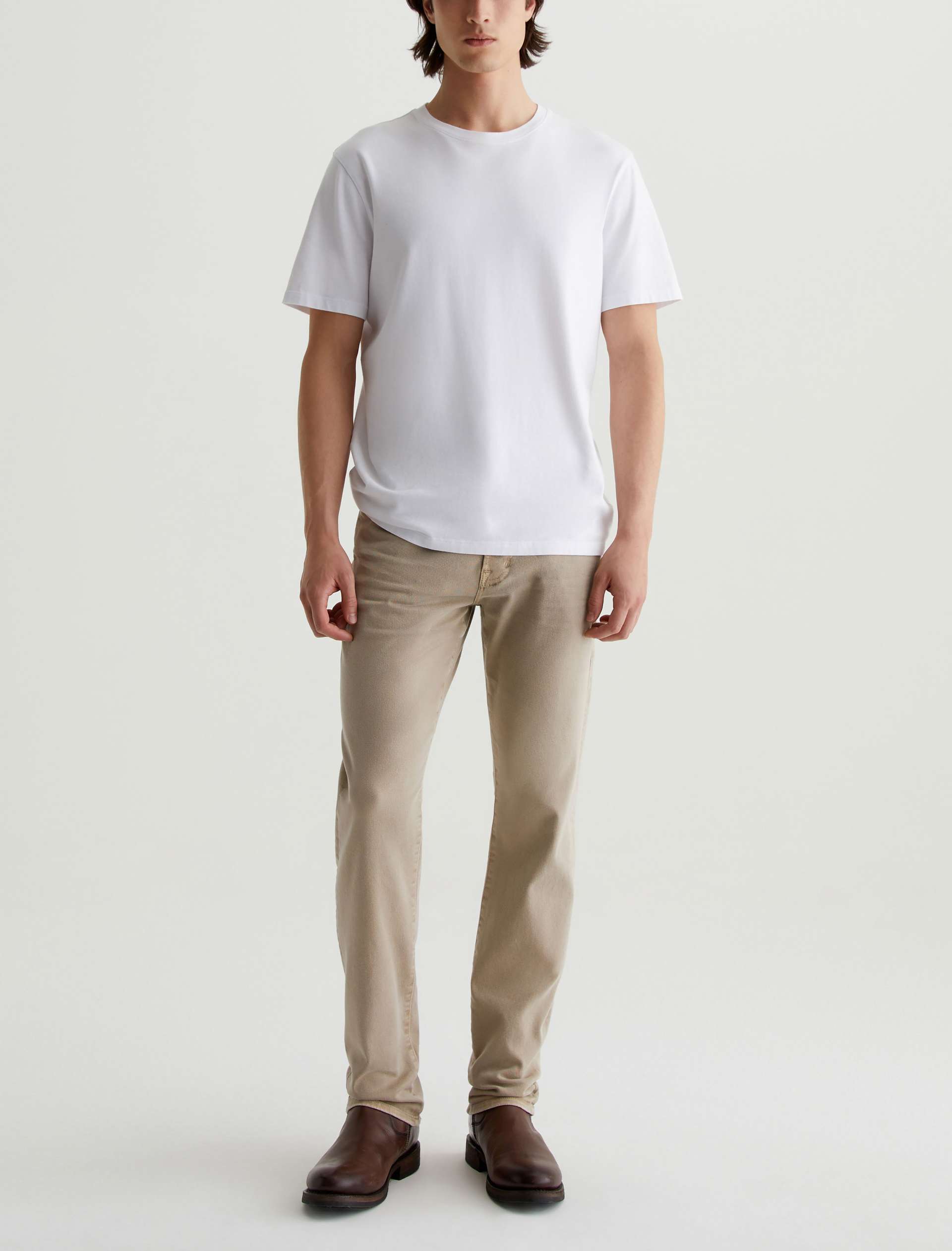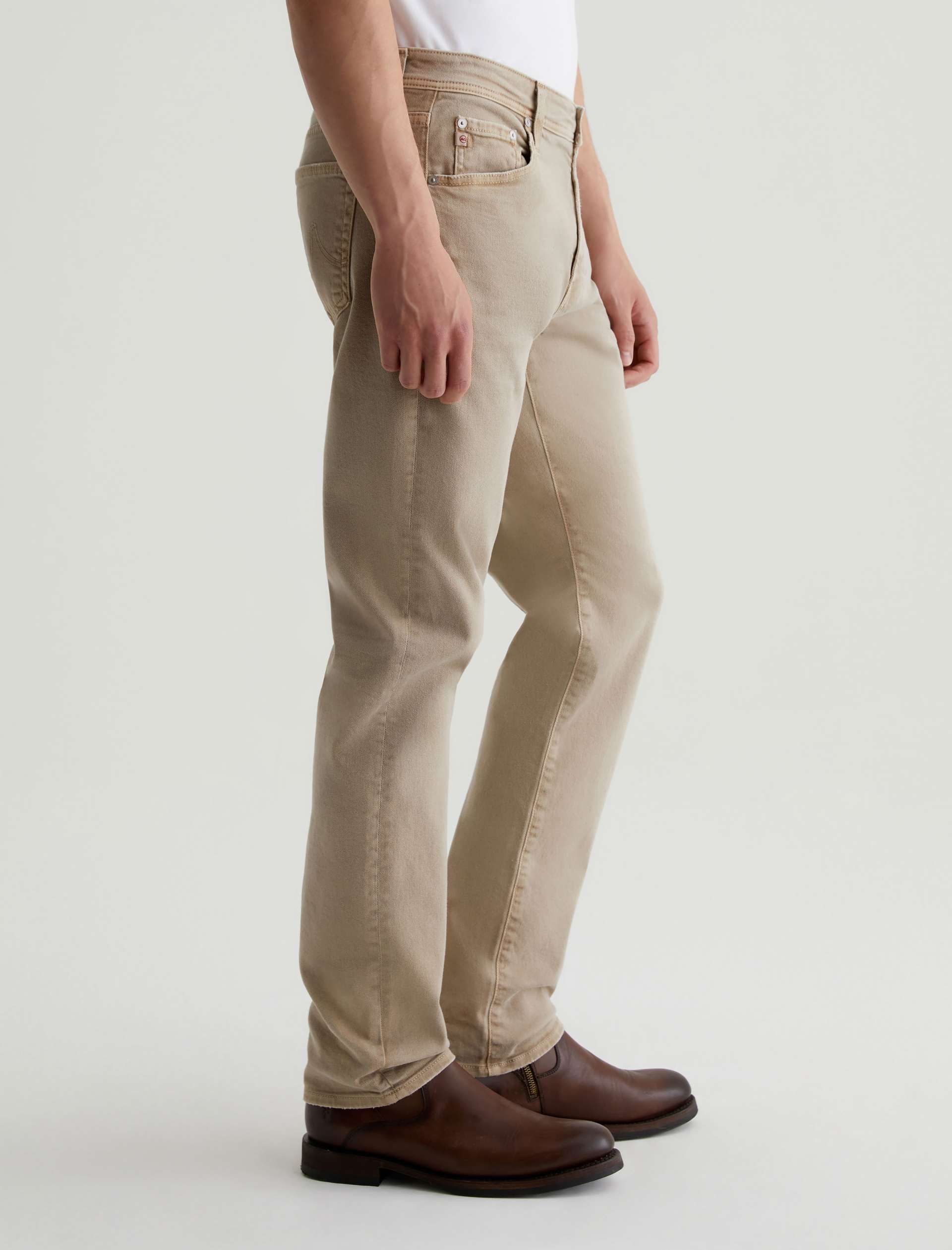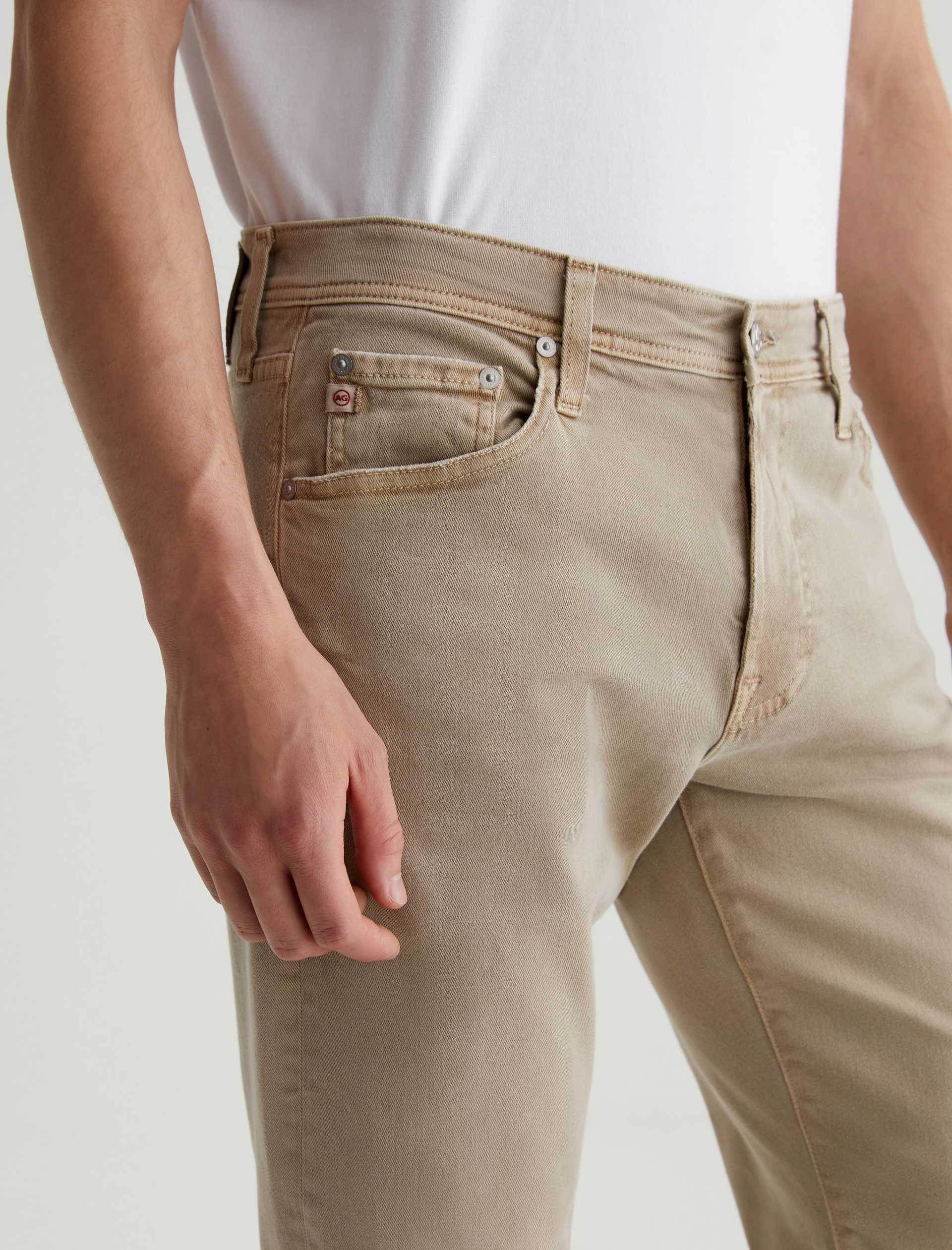 The Everett is a slim-straight men’s jean in a sulfur-dyed khaki shade. AG-ed™ fading and worn pocket edges lend an authentic lived-in look. The style has a mid-rise waist and a straight fit that’s relaxed from hip to knee before slightly tapering at the leg opening. These slim-straight men’s jeans feature 8.7 oz. Hype