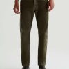 Our Everett slim-straight corduroy pants for men have a soft, plush feel in 8.8 oz. Range Stretch Cord fabric from Japan. Designed with fine-wale construction, this pair has been sulfur-dyed for a versatile dark-green shade. The style has a mid-rise waist and a straight fit that’s relaxed from hip to knee before slight