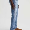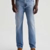 Everett is a slim-straight jean in stretch-blend 11 oz. Lead Denim from Japan. The five-pocket style has a comfortable mid-rise waist and a straight fit that’s relaxed from hip to knee before slightly tapering at the leg openings. These slim-straight men’s jeans comes in a medium indigo shade that’s been lightened by f