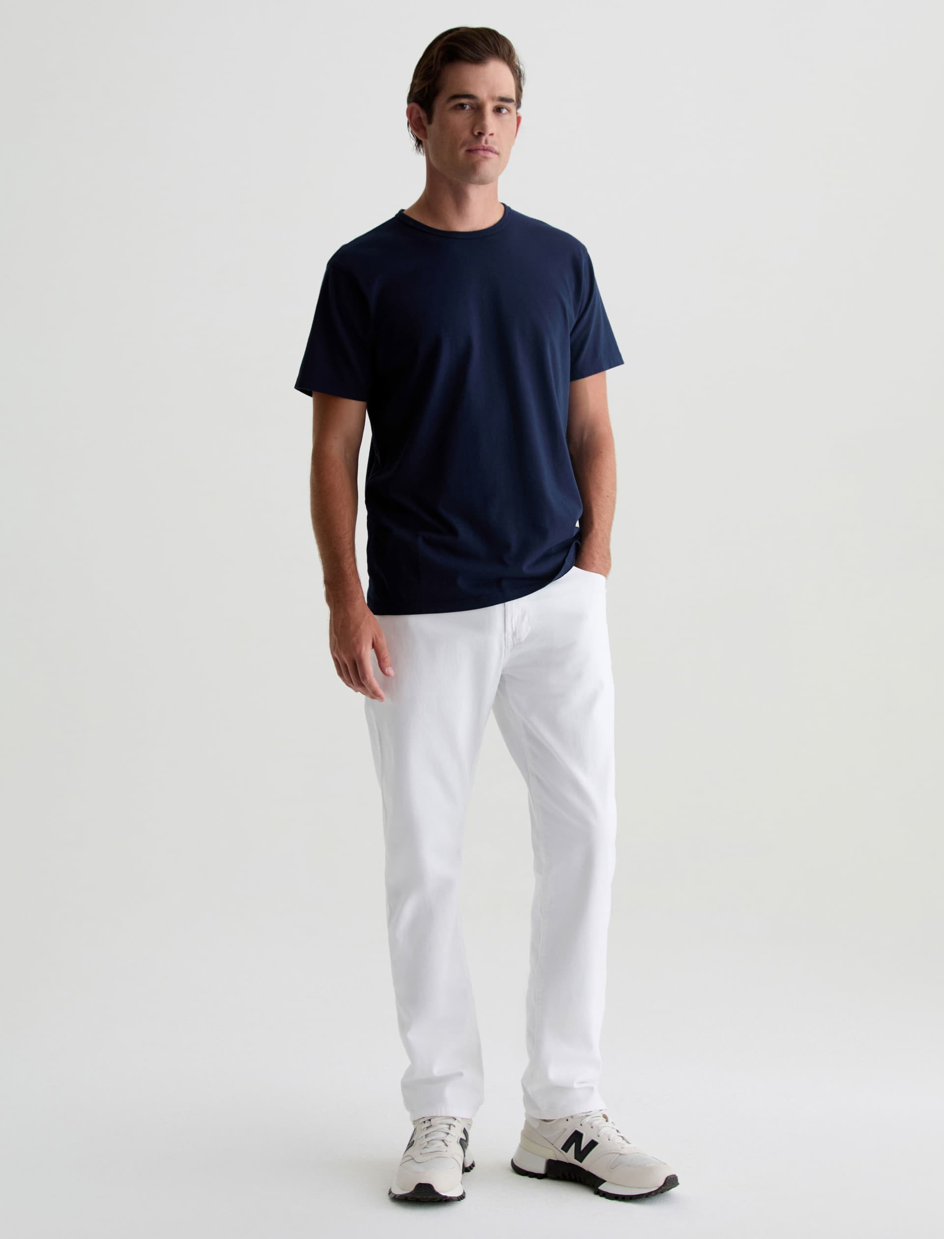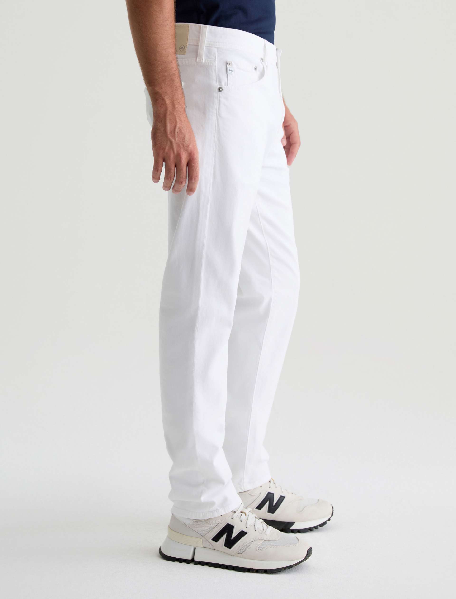 Everett is a slim straight jean for men featuring a white hue—cut in a comfortable mid-rise waist with a straight fit that’s relaxed from hip to the knee before slightly tapering at the leg opening. This men’s slim straight jean is designed in 8.4 oz. Sueded Stretch Sateen, a super stretch fabrication for maximum comfo