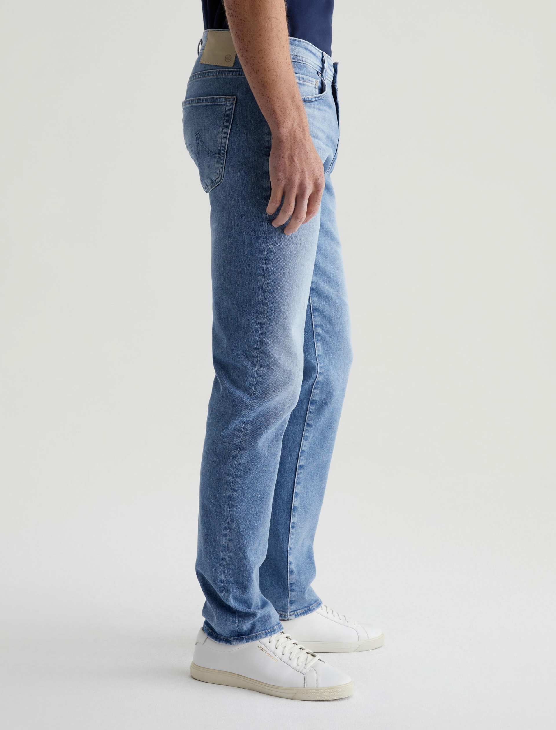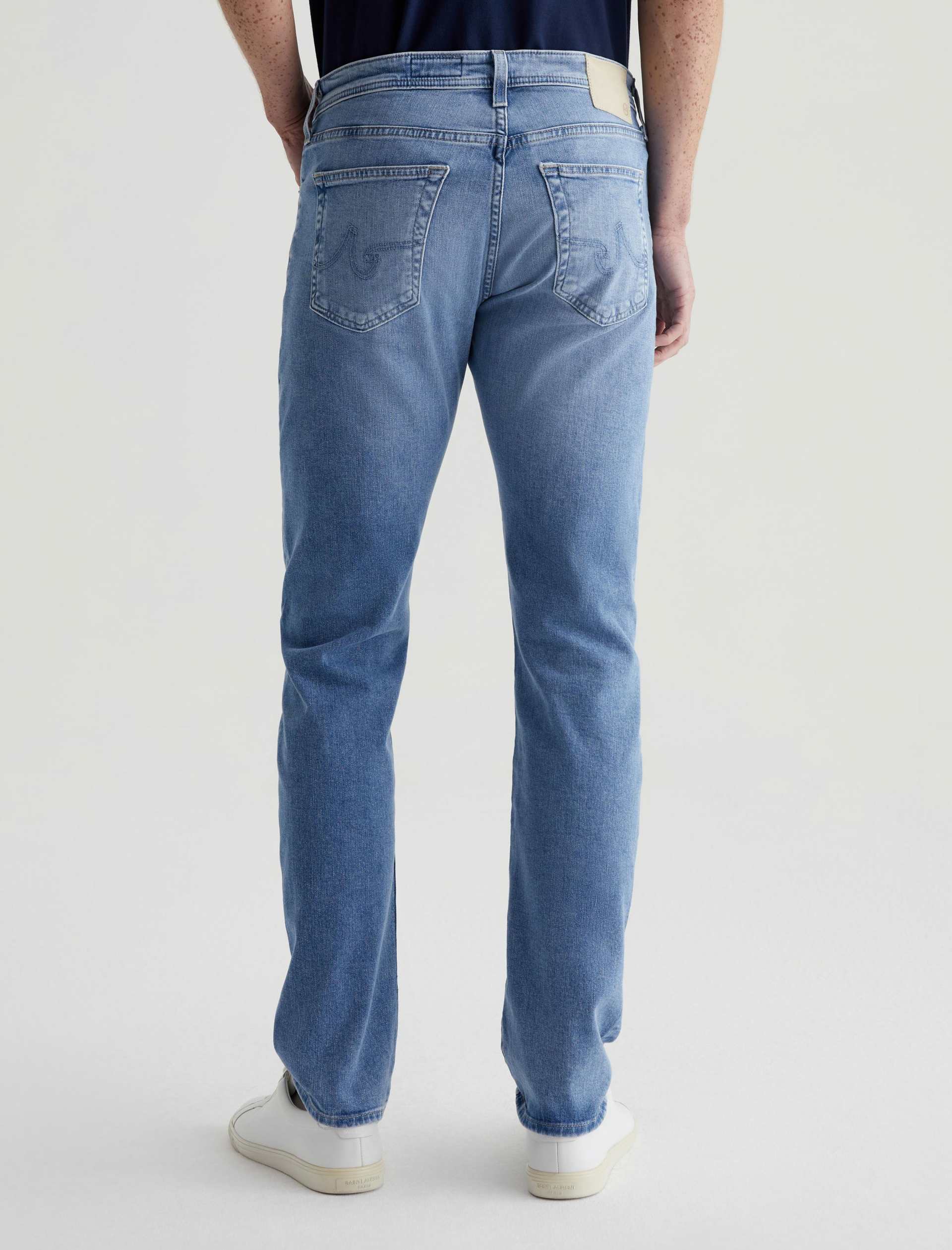 Our Graduate five-pocket men’s jeans feature a classic tailored silhouette in a light indigo wash with subtle fading. Topped by a slim mid-rise waist, it’s got a relaxed fit from hip to knee before tapering at the leg opening. This pair comes in 9.4 oz. Hyper Soft Indigo Denim, a velvety-soft left-hand twill from Japan