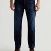 The Graduate is a tailored leg jean for men, done here in a classic dark indigo wash with fading and whiskering. These men’s jeans are cut with a slim mid-rise waist and a relaxed fit from the hip to knee before tapering at the leg opening. The pair features 11.75 oz. Union Dark Denim with comfort stretch. Marigold top