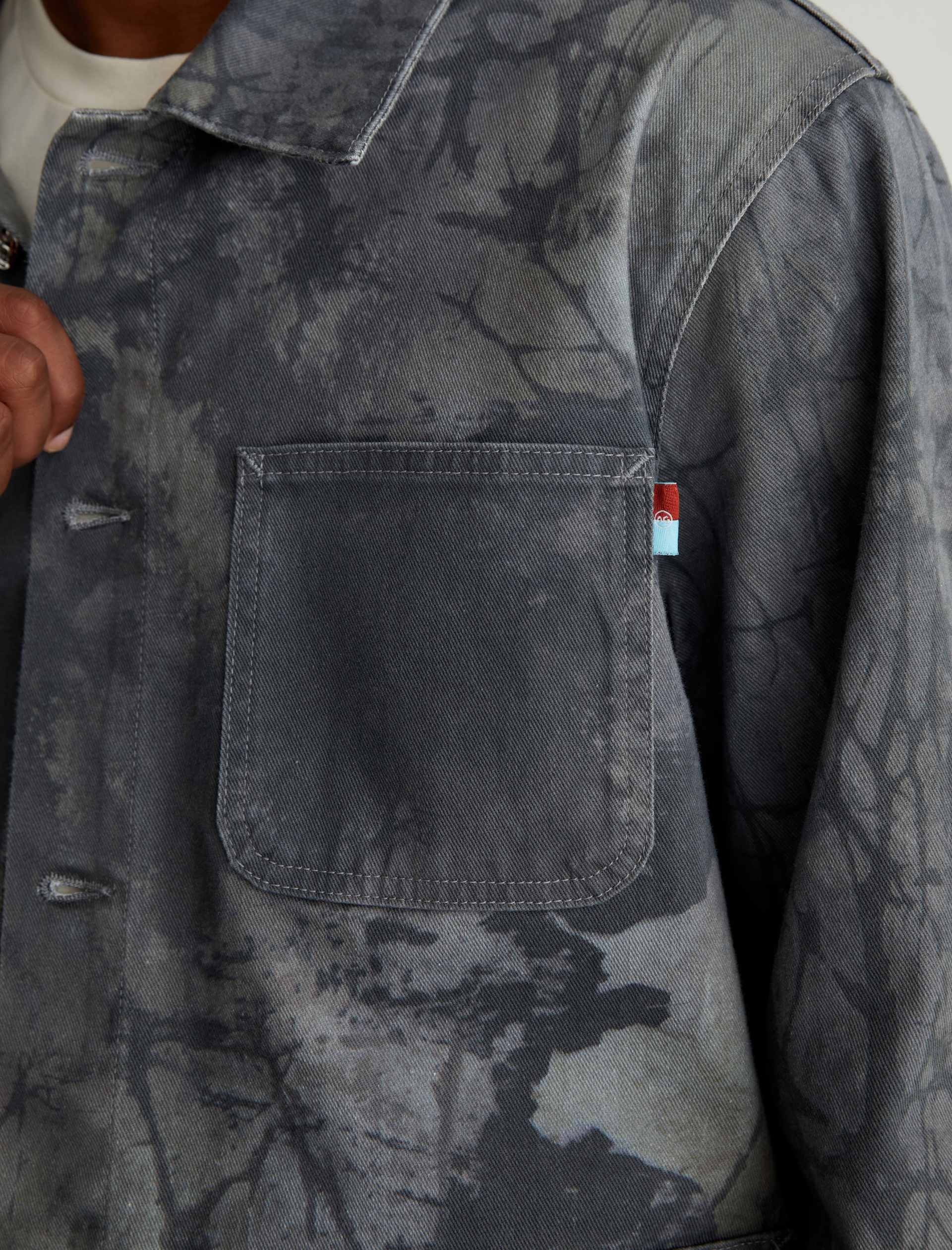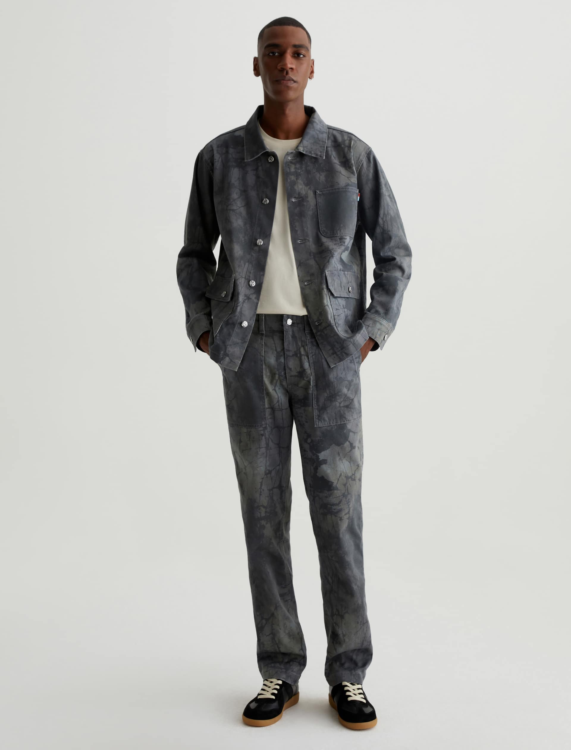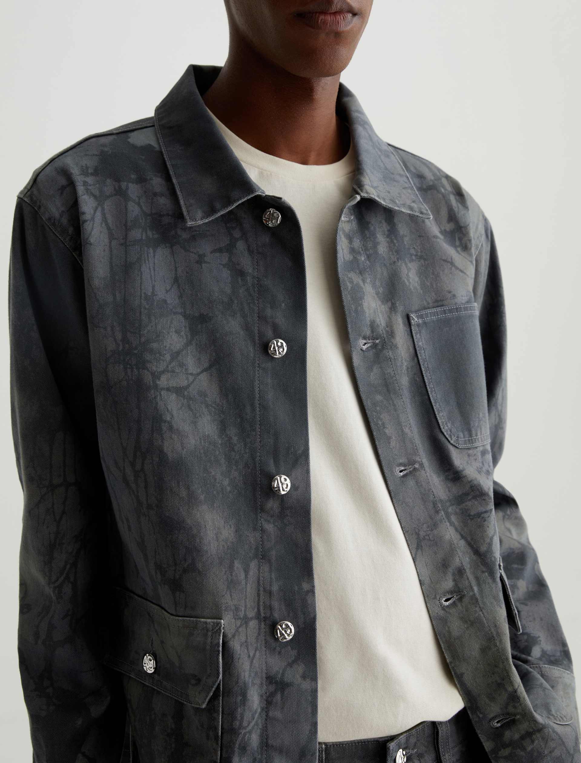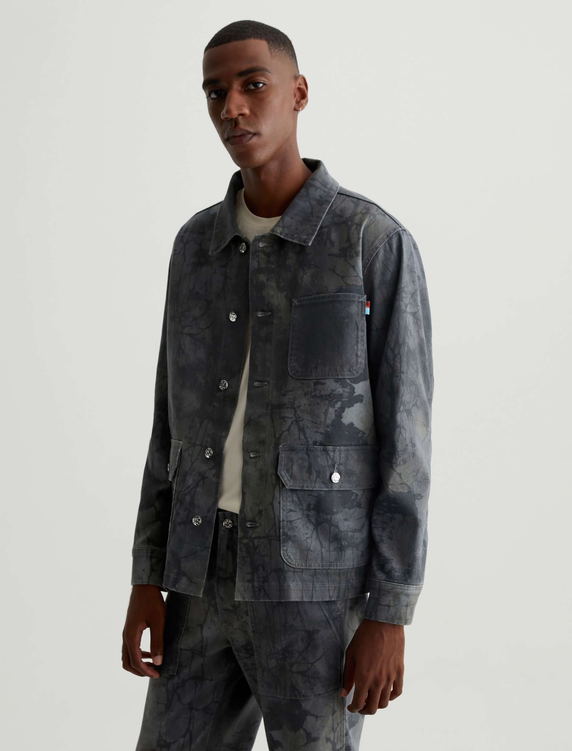 Perfect for lightweight layering, our Kirin Jacket takes inspiration from vintage workwear. The style has a slightly boxy shape with a pointed collar, button front placket, and utility pockets at the front. It’s a modern update to the classic chore jacket, done here in AG’s best-selling Sueded Stretch Sateen for a refi