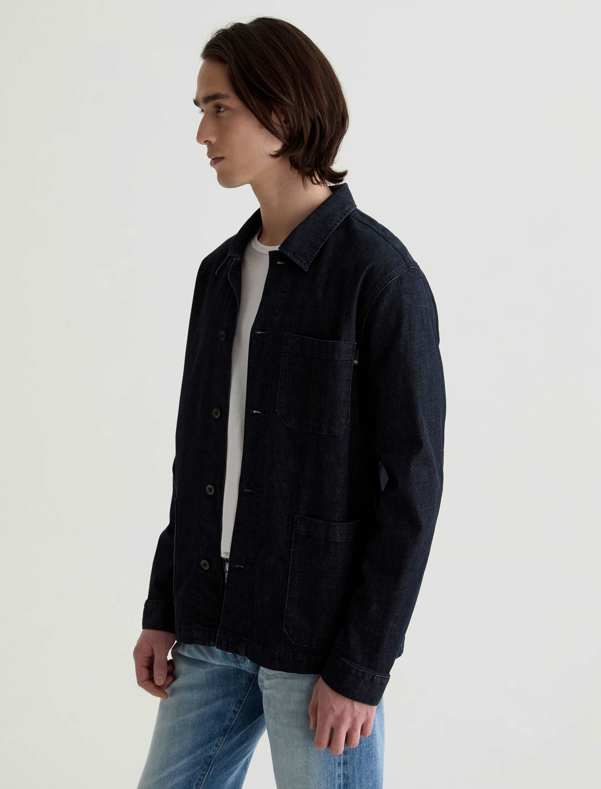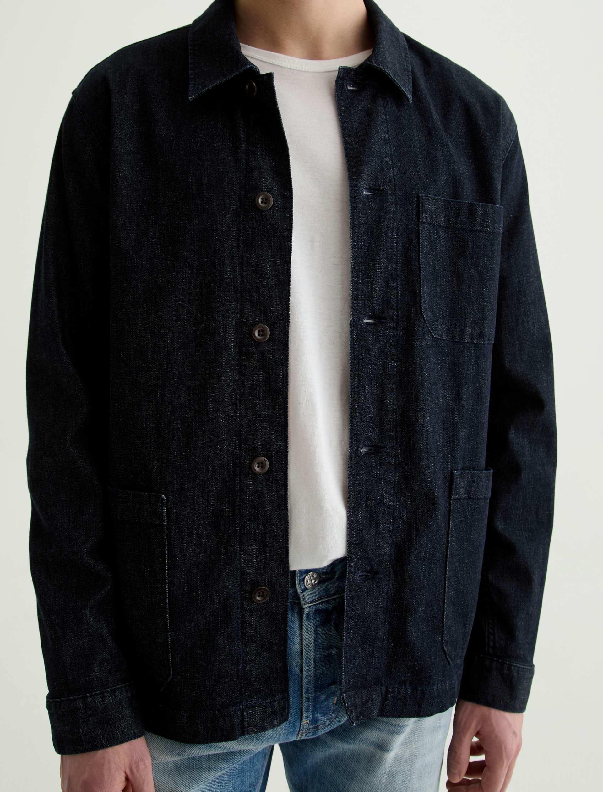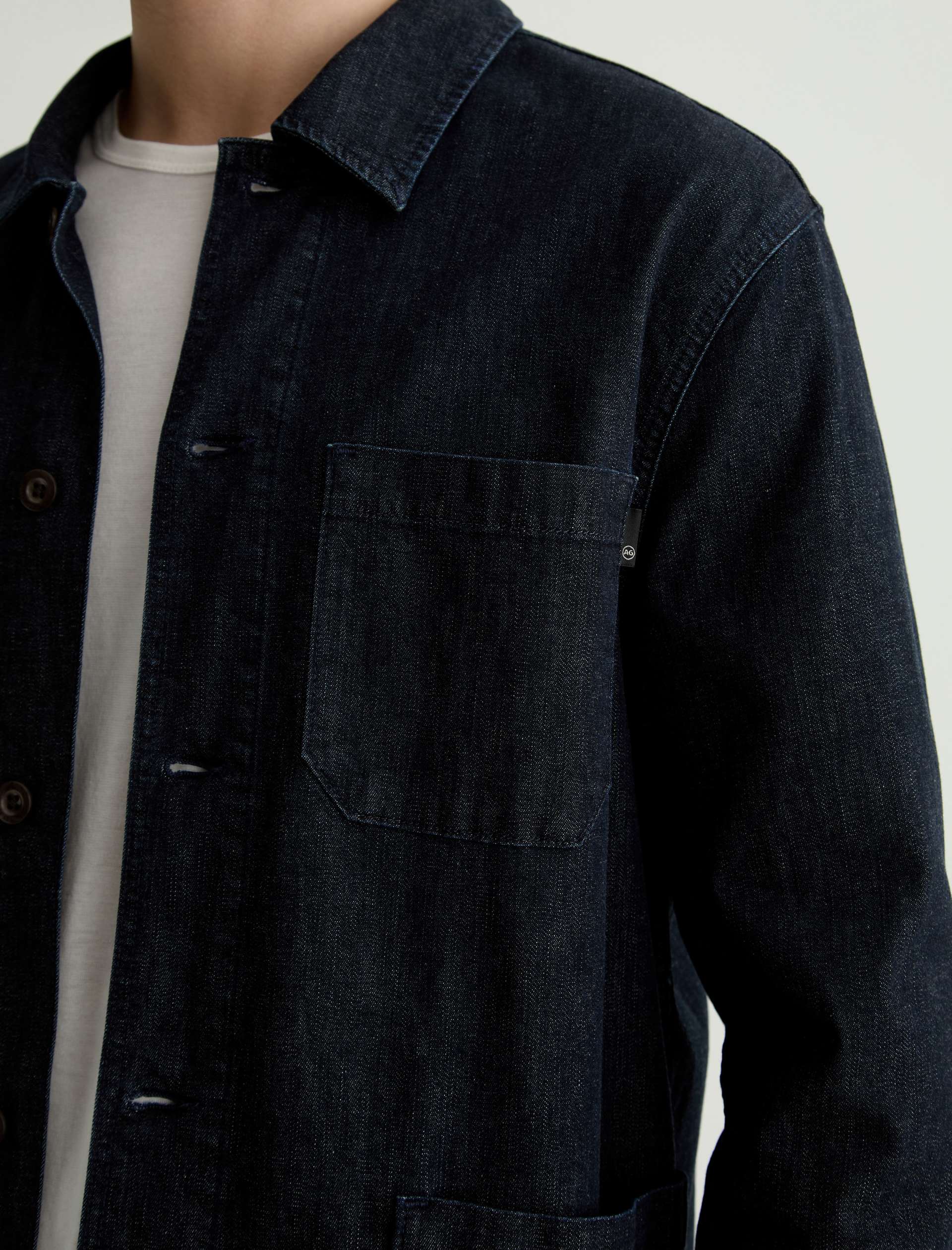 The Roari Jacket is a chore-style fit crafted from 7.25 oz. Nimble Indigo Denim in a dark wash. Designed with long sleeves and a comfort stretch feel, it offers a flexible fit with classic utility appeal.