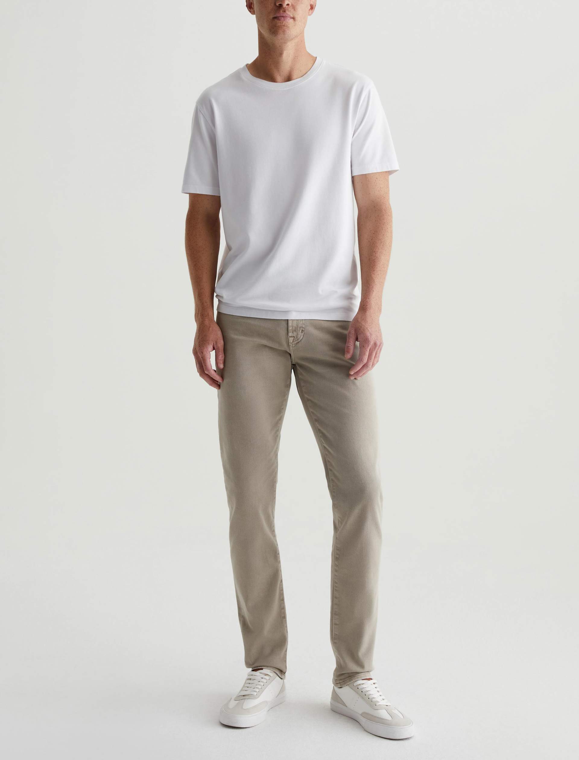 Tellis is a modern slim fit in an AG-ed™ khaki color. Fading and subtle wear along the edges emulate 7 years of authentic wear. Featuring a fitted upper block with a mid-rise waist, these five-pocket men’s jeans have slim legs that taper down to the ankle in 8.7 oz. Hyper Soft Bull Denim, a velvety-soft left-hand twill