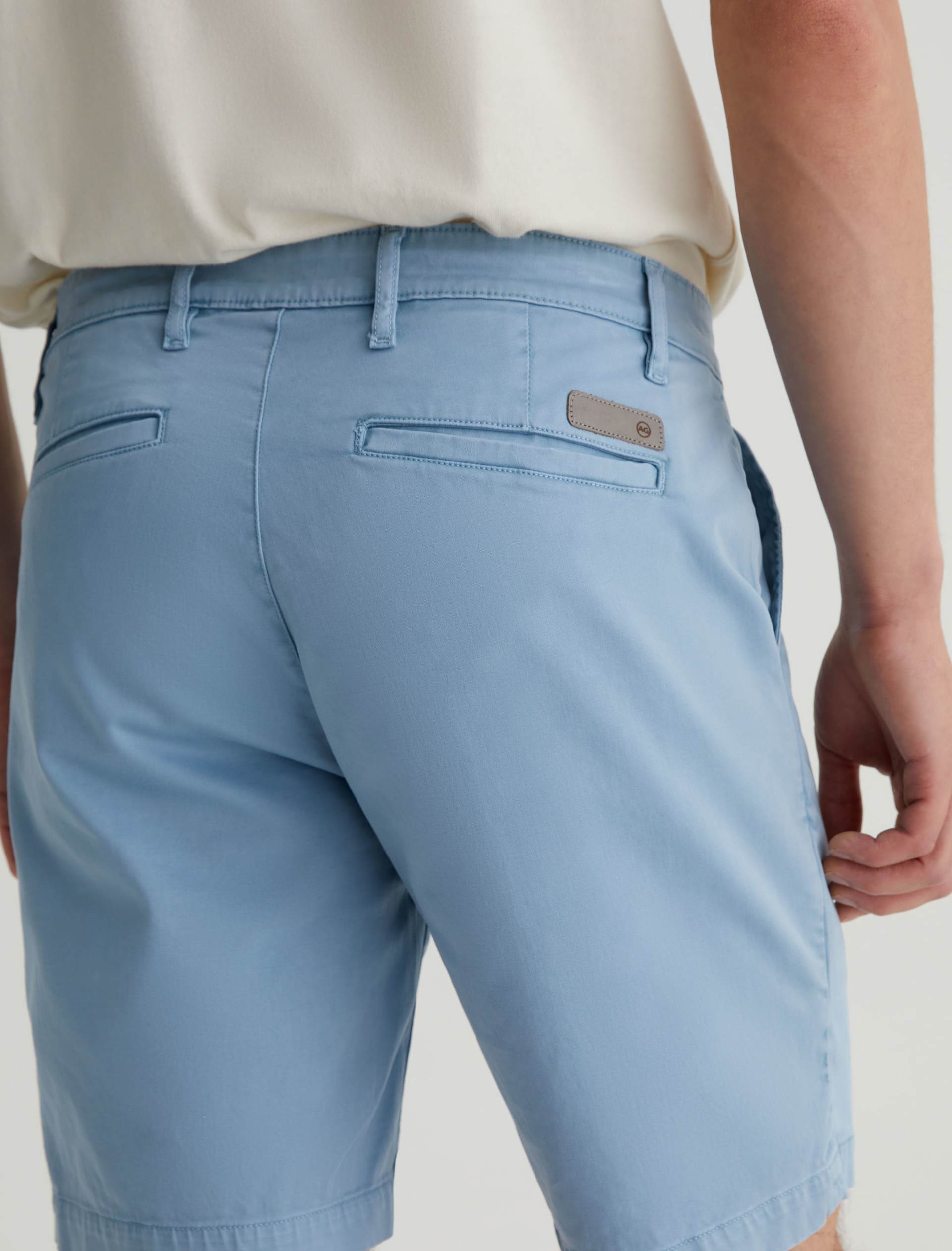 Our Wanderer Short for men has a clean trouser look in a slim fit with slightly tapered legs. Sulfur-dyed to a subdued blue shade, these men’s shorts are crafted from lightweight and sumptuous 7.4 oz. Brighton Sueded Sateen with premium stretch.