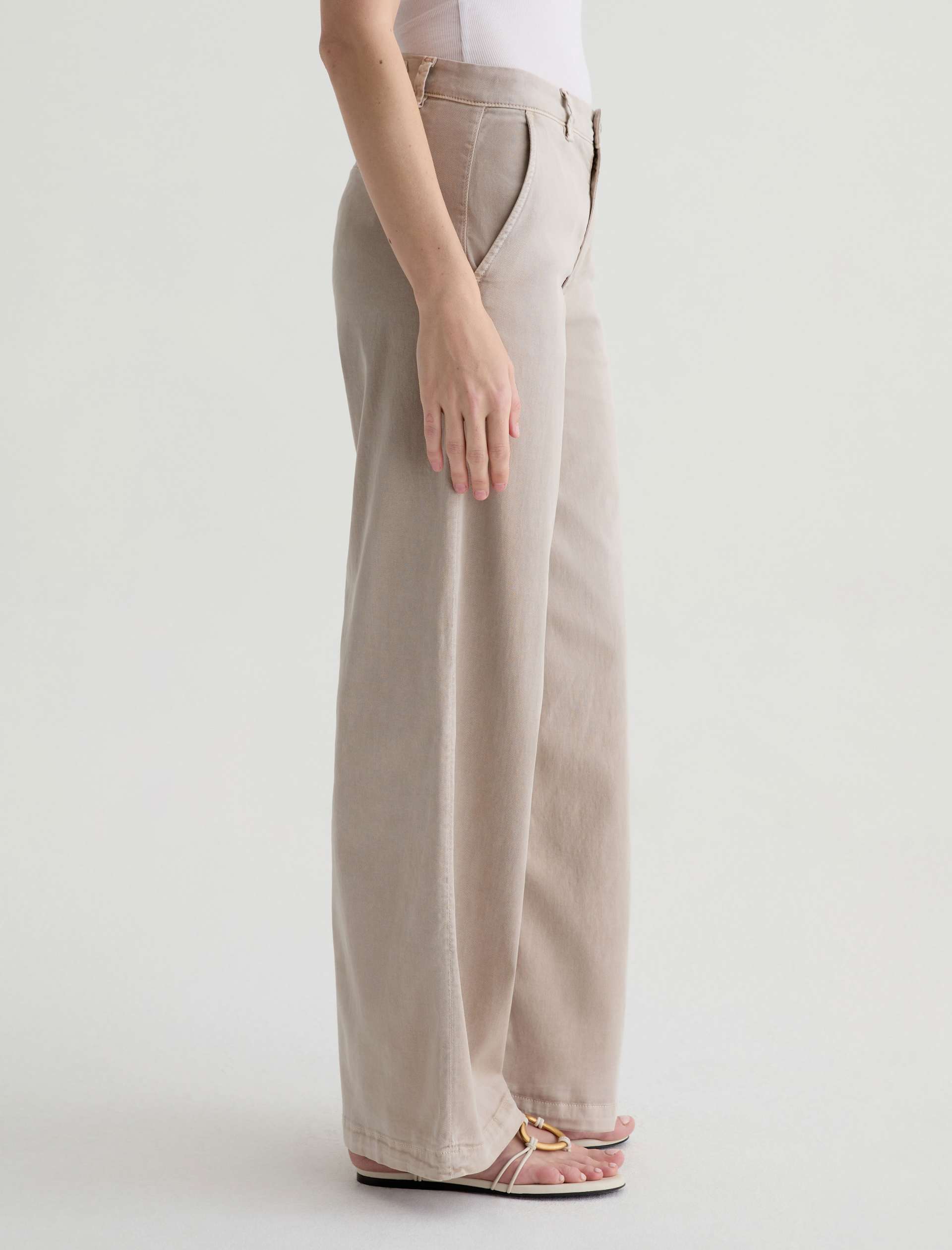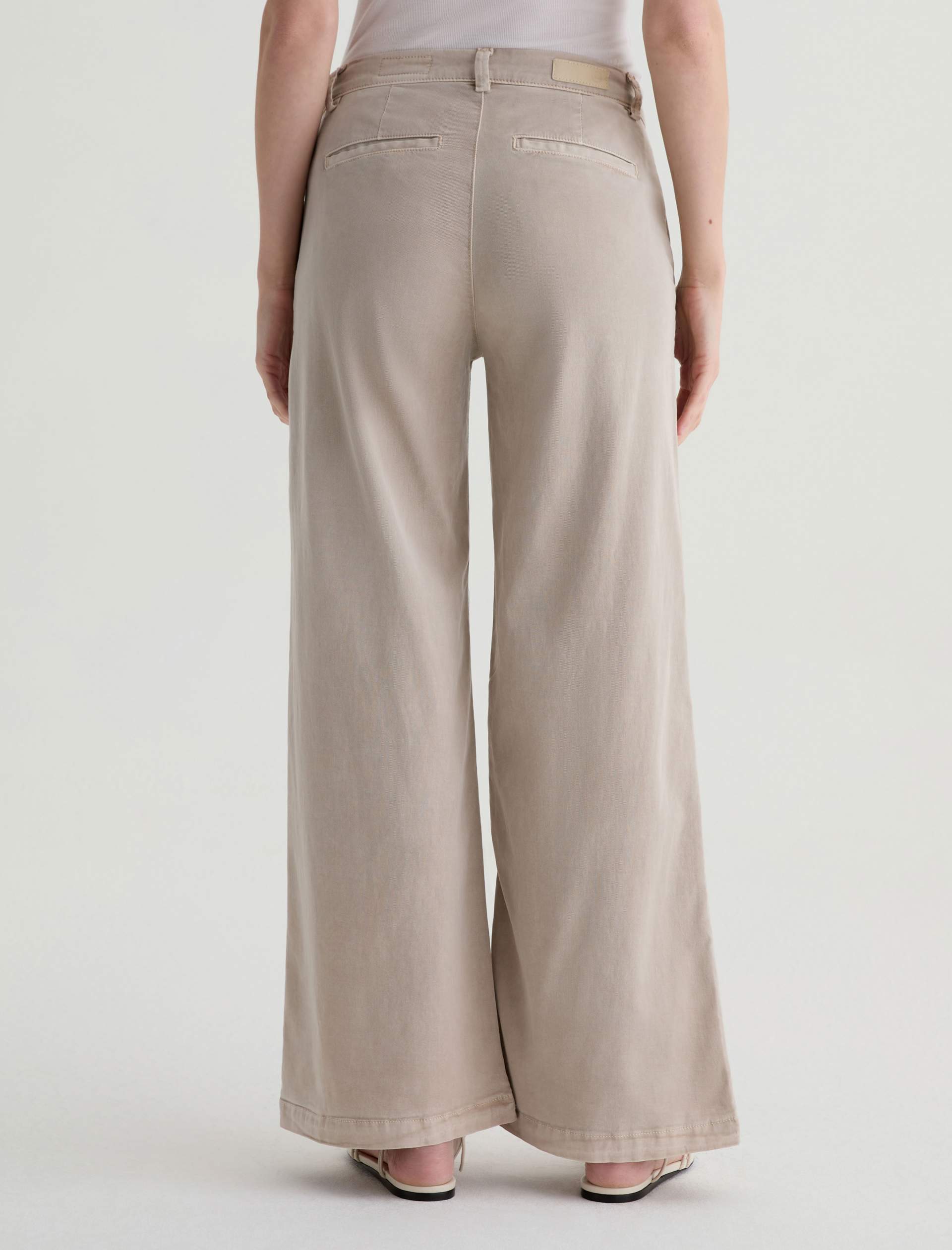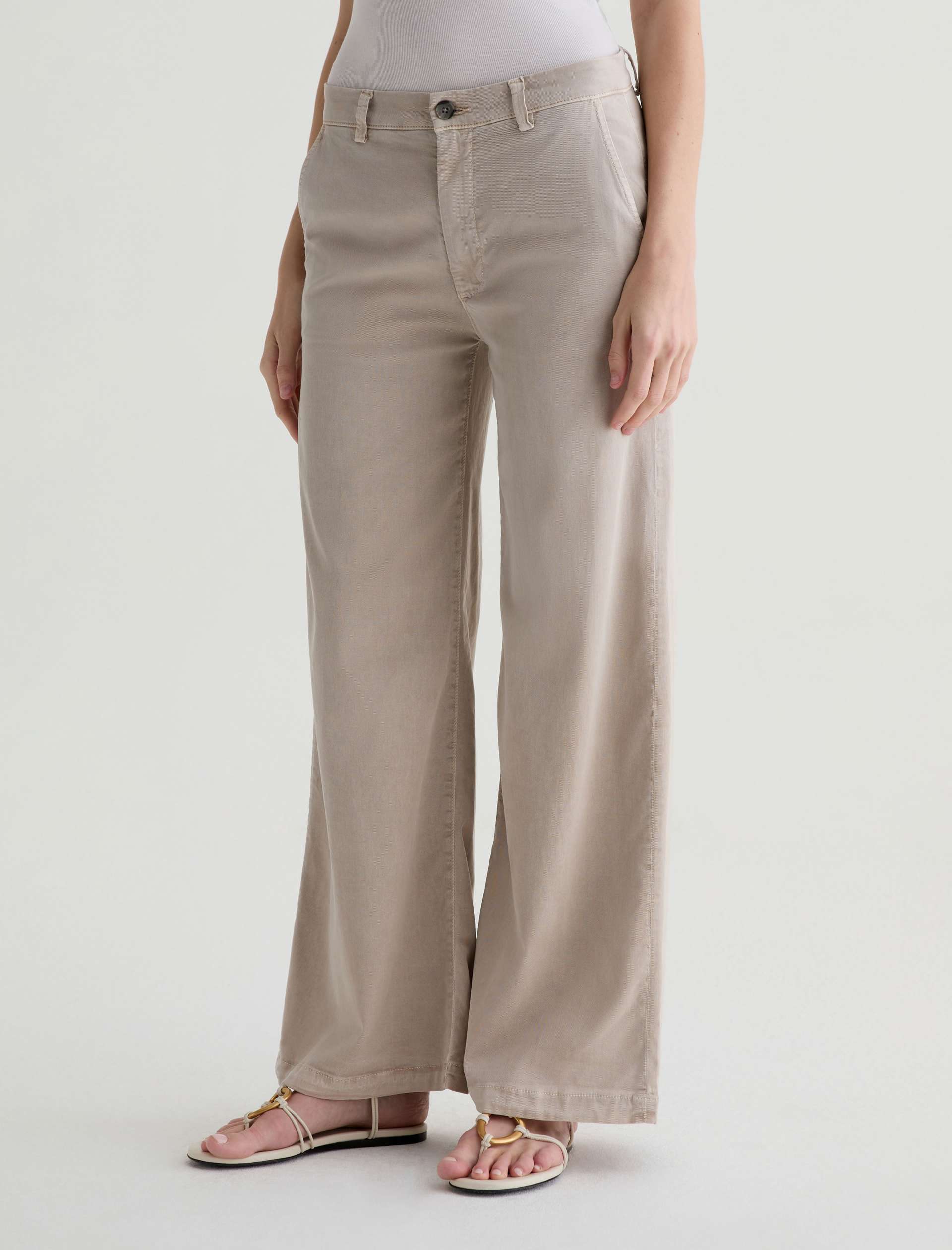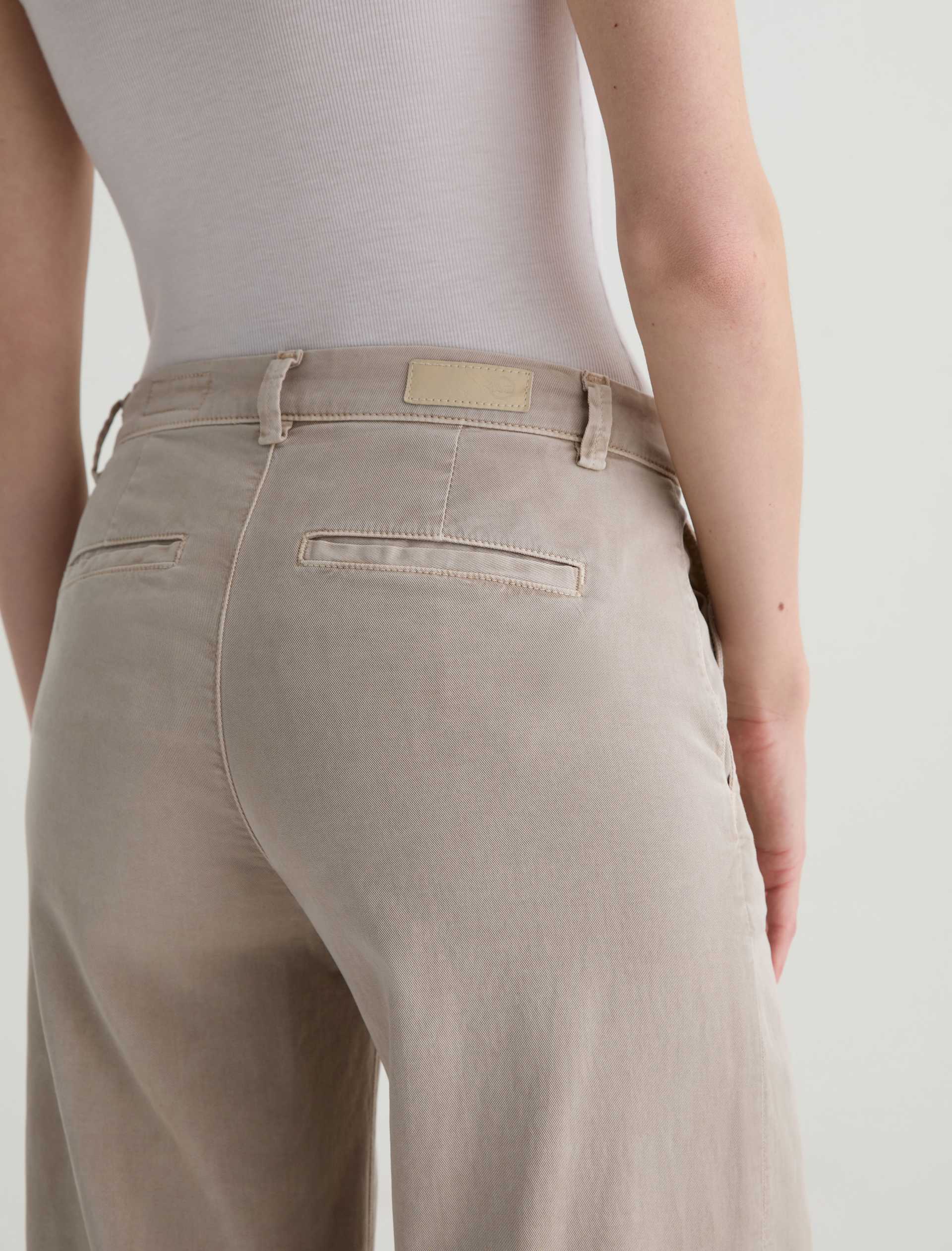 The Caden Wide leg trouser is a wide-leg, tailored pant crafted from Stretch Cotton Tencelâ„¢ Twill for a soft, flexible feel. Designed with a relaxed fit at the hips and a loose, roomy cut through the legs, this Sulfur Simple Taupe fit offers comforting structure. Details include a faux-horn button closure, slant front