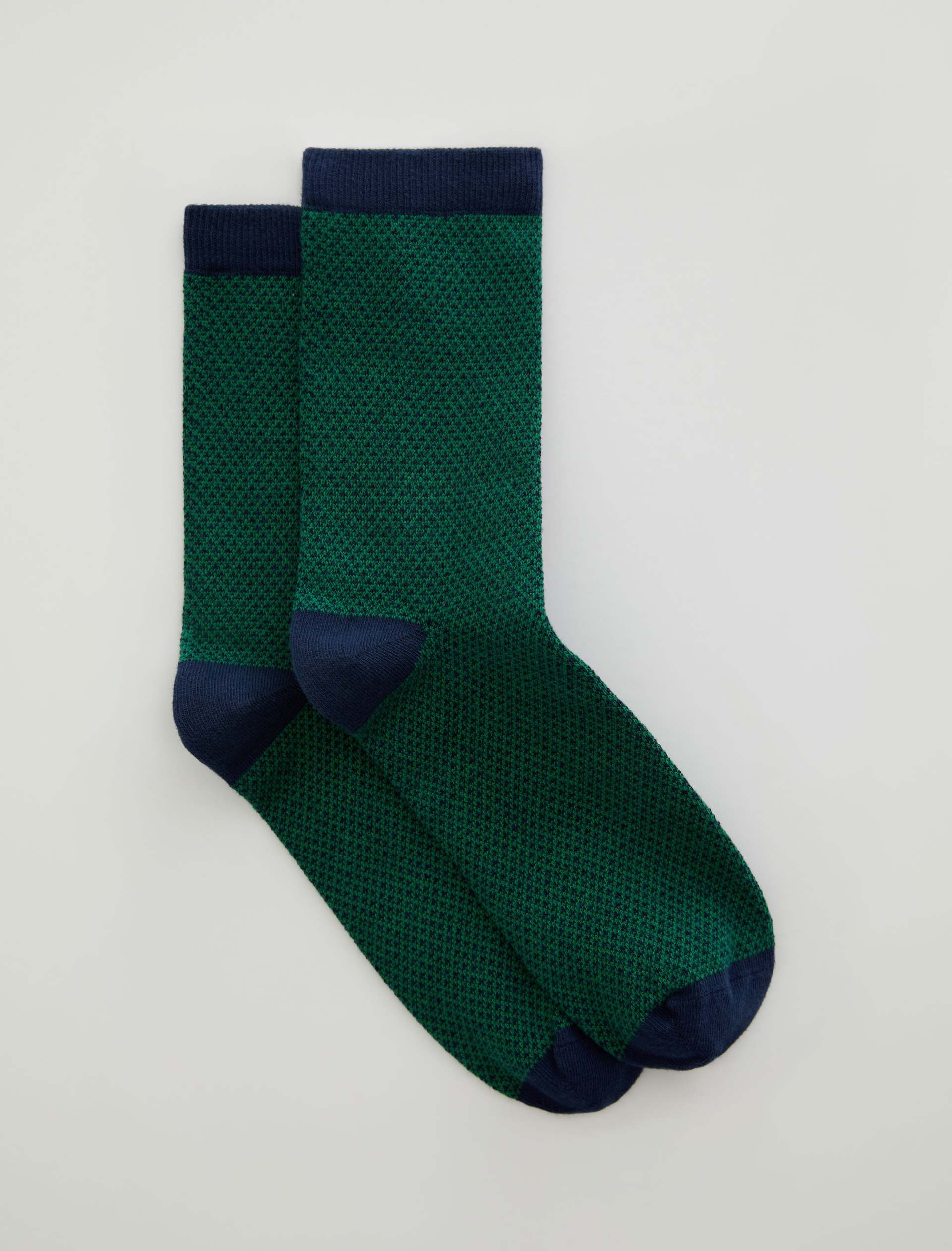 This sock is our classic crew sock. Featuring a check pattern, this pair has been knitted from a comfortable cotton blend and ribbed through the ankles.