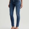 The Farrah Ankle skinny jean for women features a medium indigo shade that’s been washed down and faded to emulate 12 years of wear. Subtle whiskering and crease marks add to the vintage look. Cut with a mid-rise waist and cropped length at the ankle, this women’s skinny jean is designed in 10 oz. Empower Denim with ad