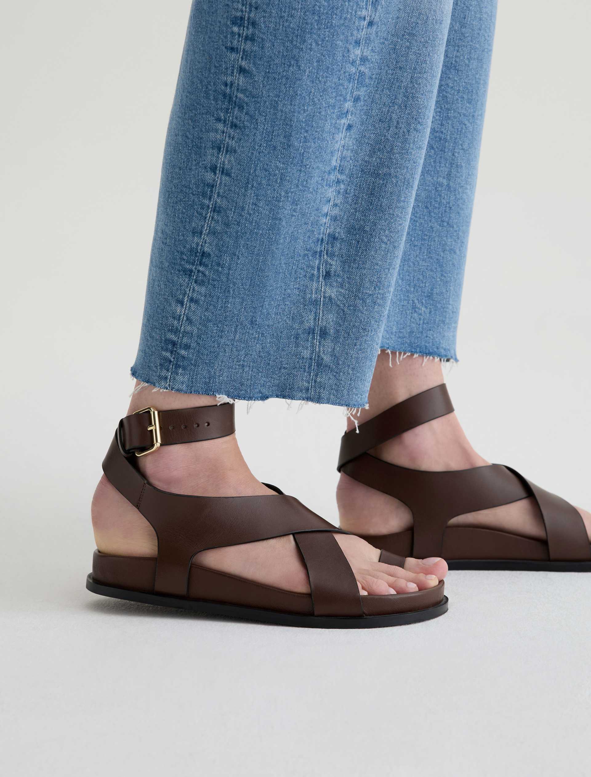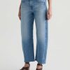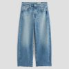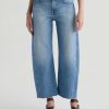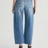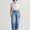 Our Hattie Crop in Helios is a high-rise barrel jean crafted from vintage comfort stretch denim. Finished in a light wash with raw hems, it blends a structured silhouette with a worn-in, laid-back feel.