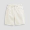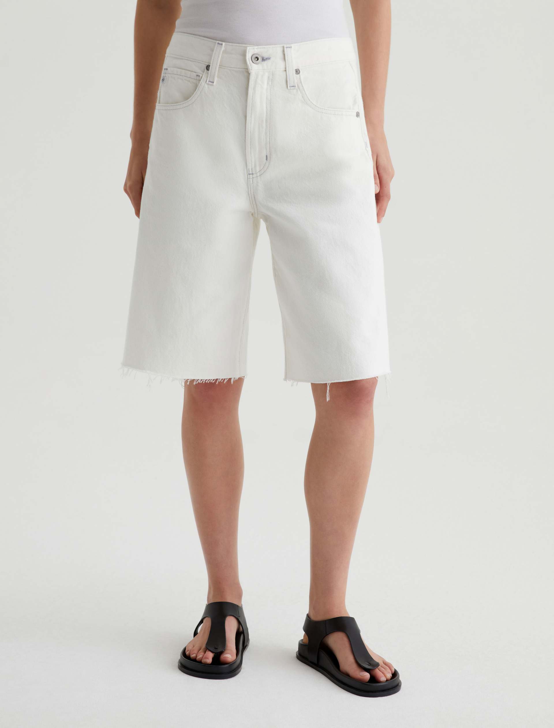 Based on our full-length Hattie barrel fit, the Hattie Short has a relaxed high-rise silhouette with raw hems that land just above the knee. This pair is crafted from 11.75 oz. Soft Pure Denim featuring 100% cotton construction in an ivory hue.