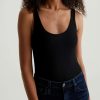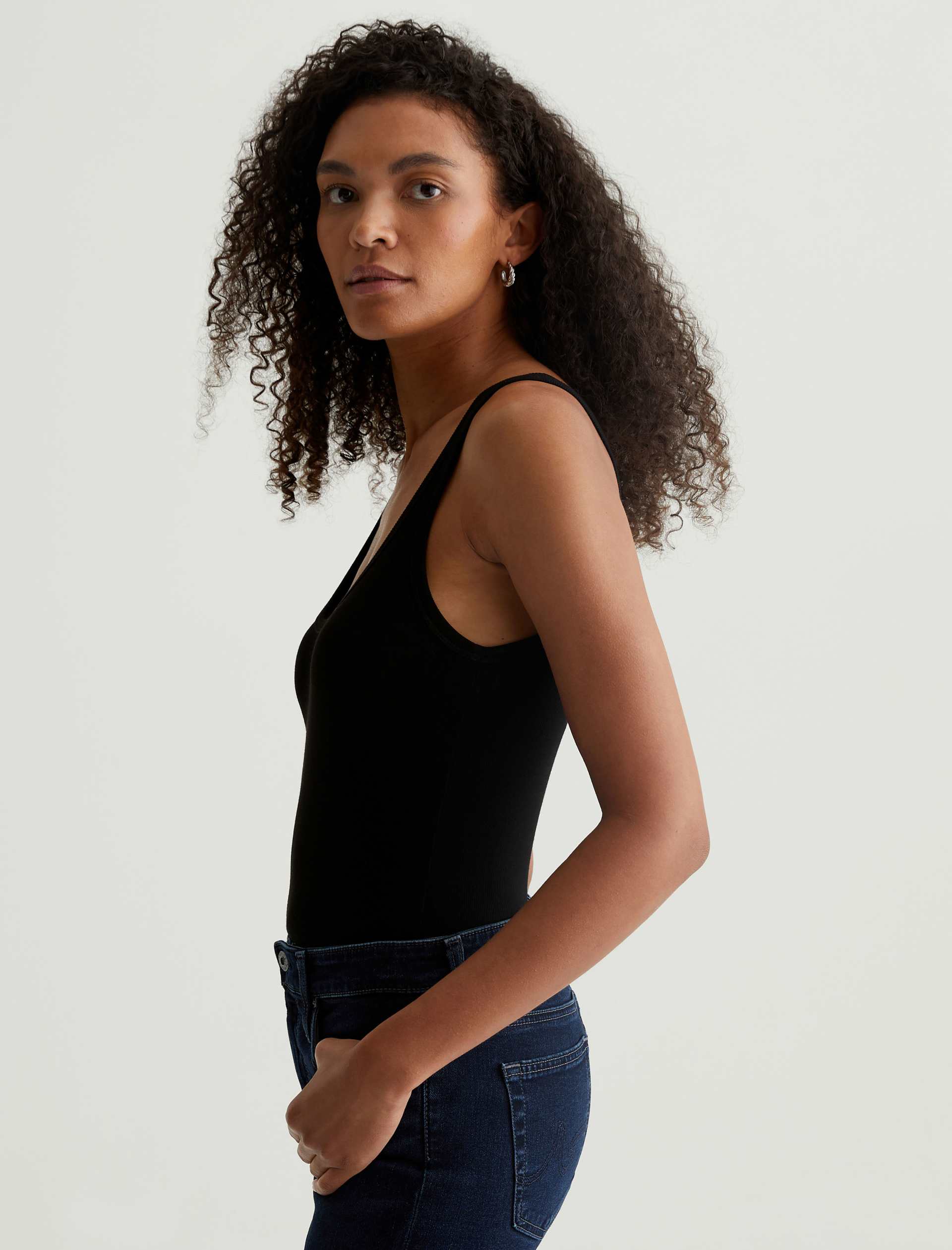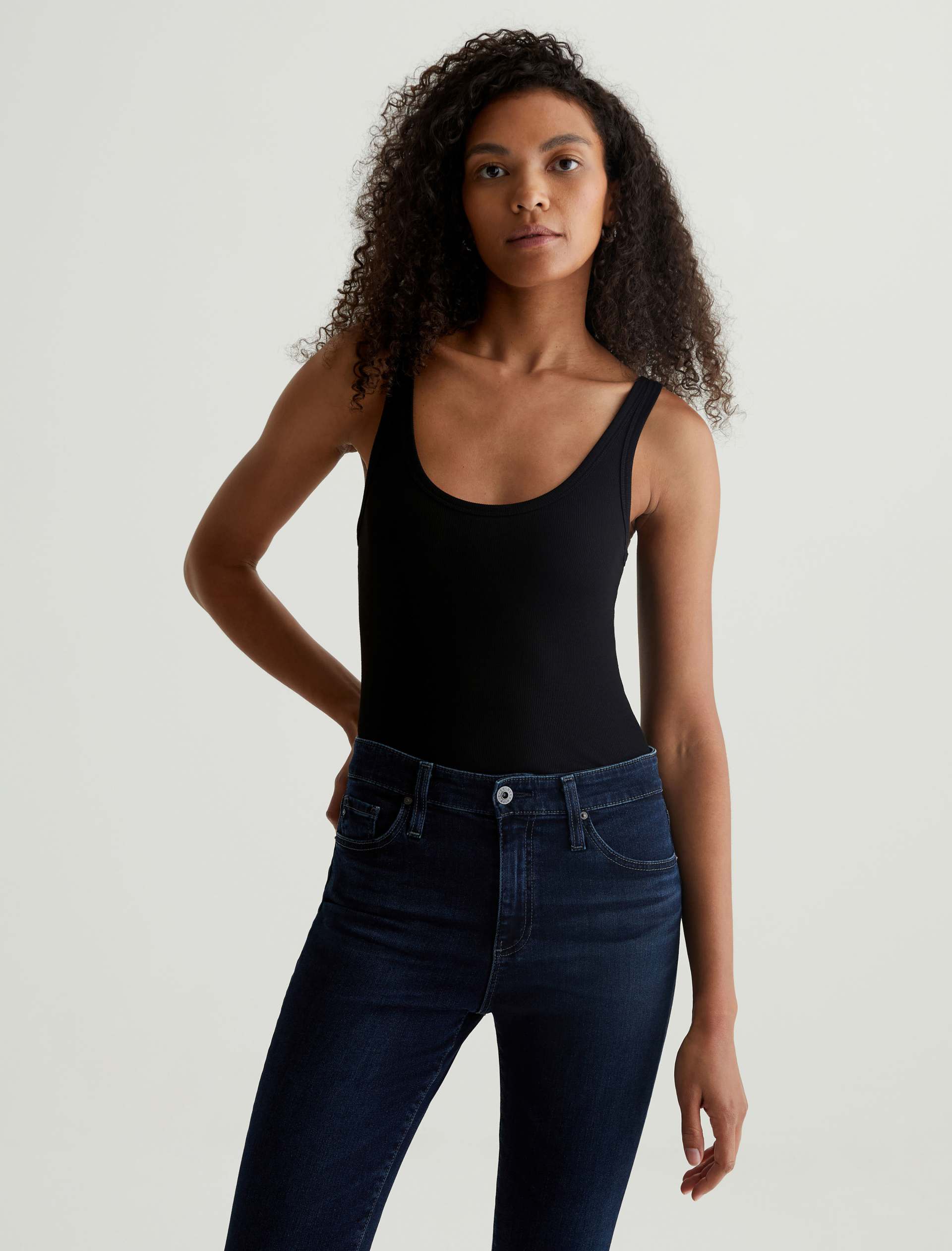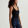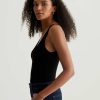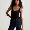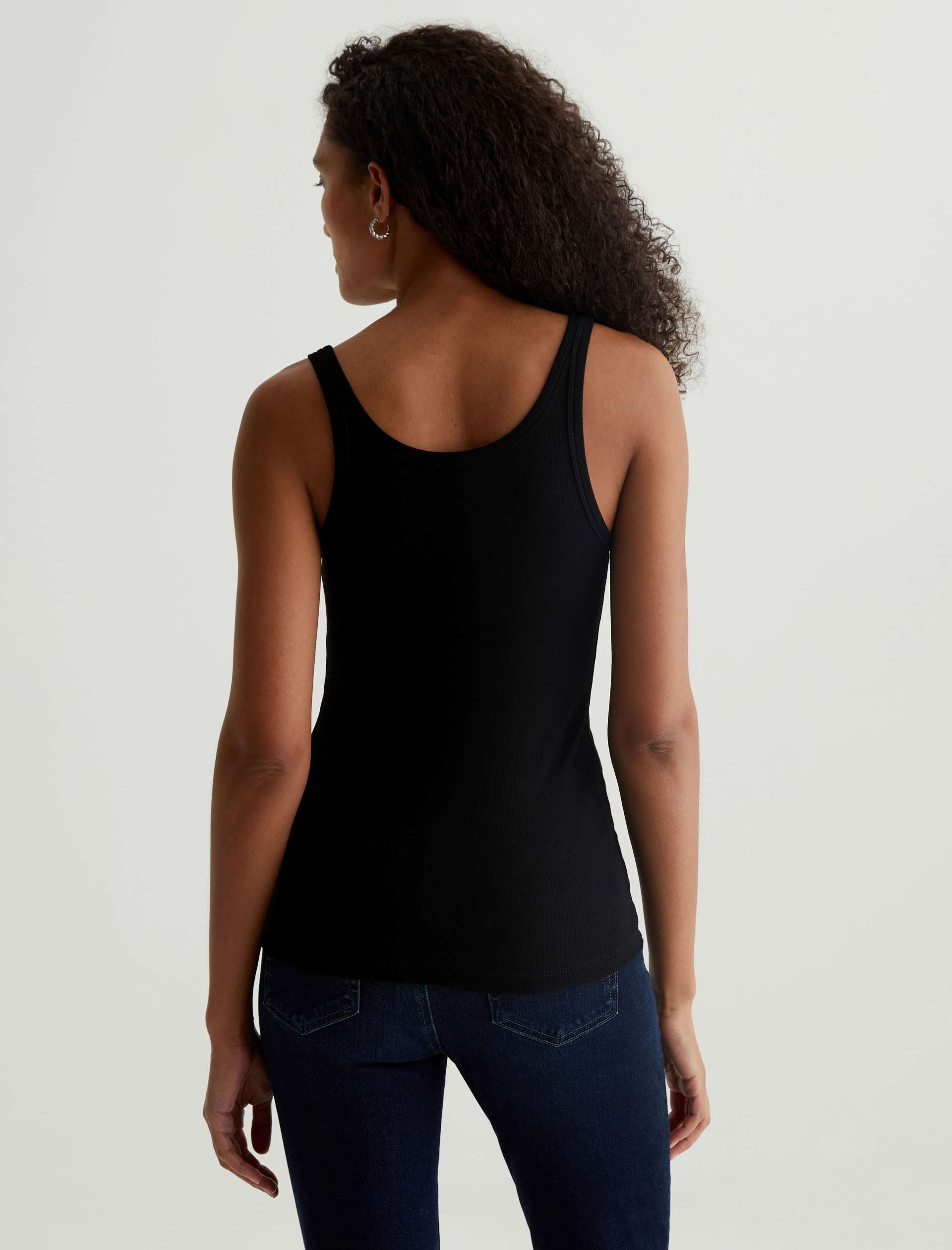 The Jaxon Tank for women features a fitted silhouette with a scoop neckline and slim straps in a racer-inspired shape. A true wardrobe staple in classic black, this women’s tank top has self-binding details for a clean, timeless aesthetic that’s versatile and easy to layer. It’s designed an eco-friendly 2×1 lyocell rib