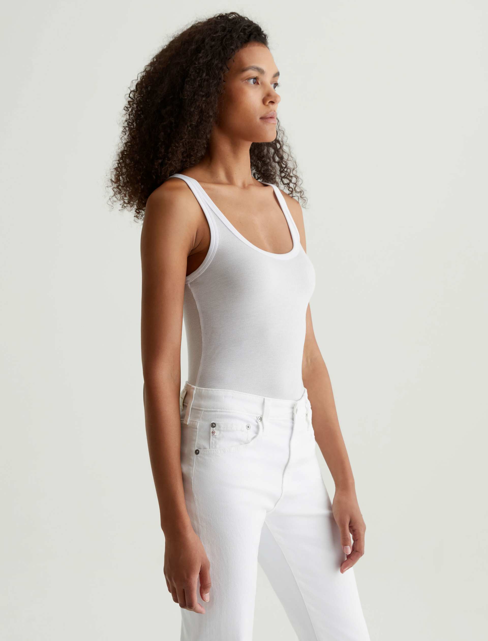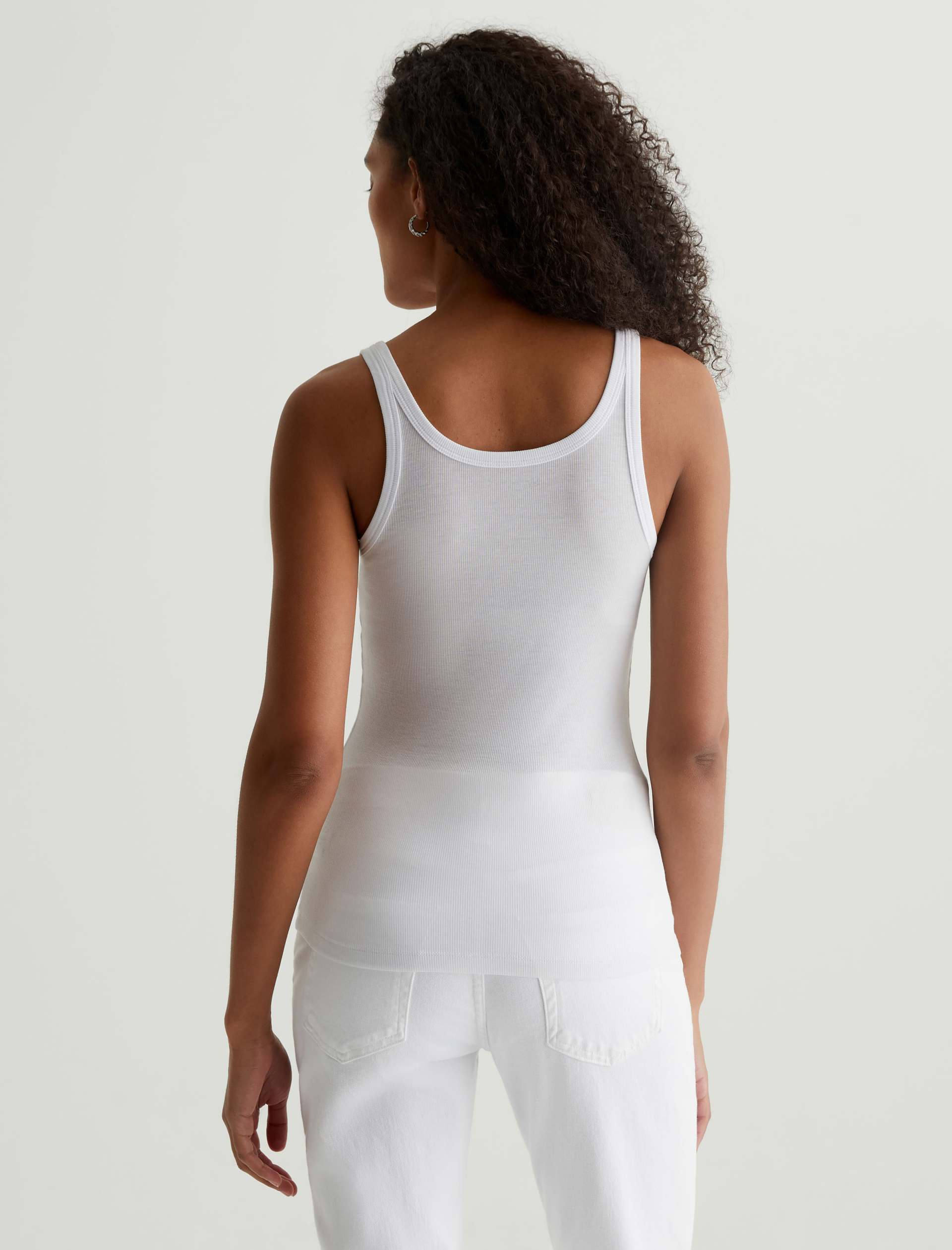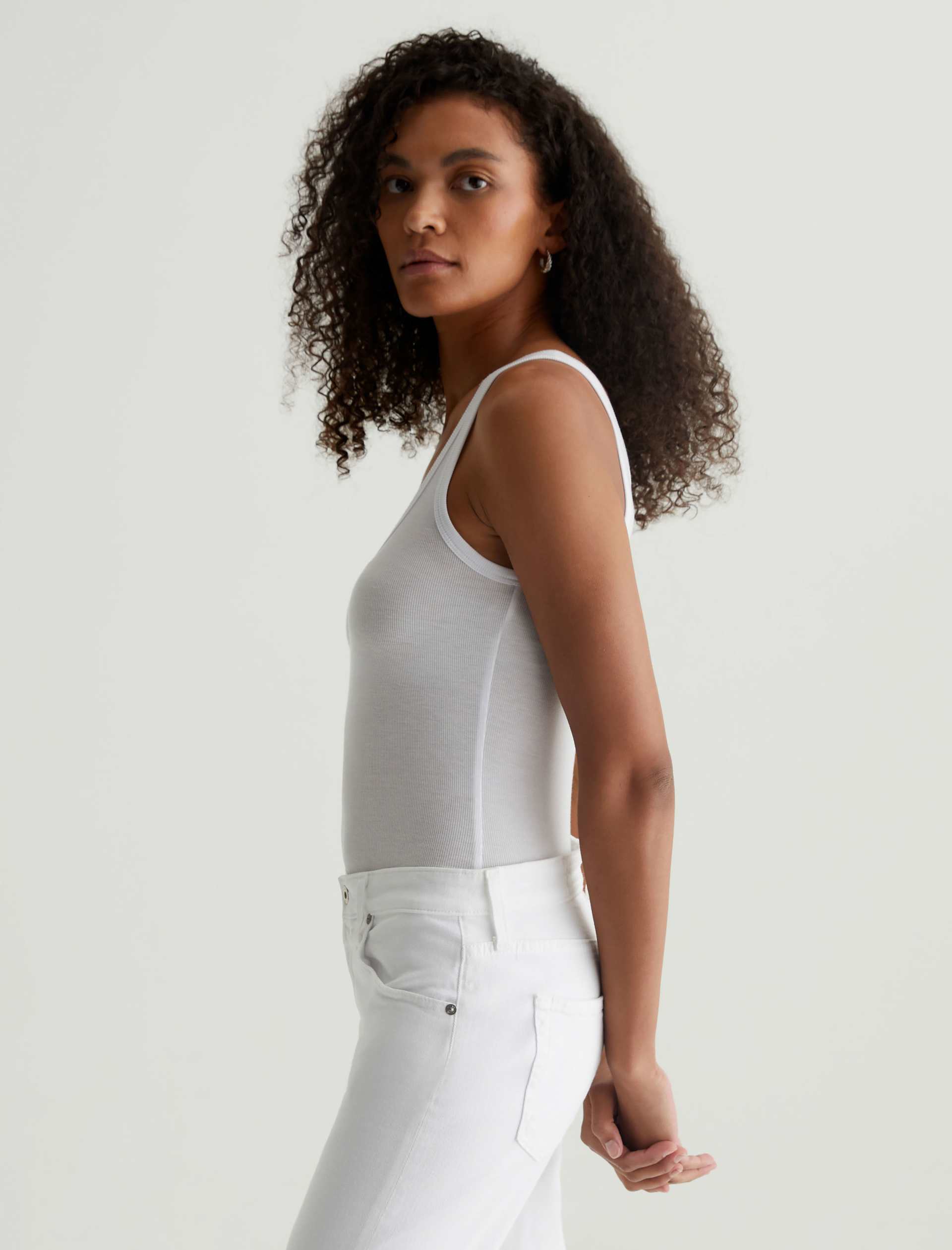 The Jaxon Tank for women features a fitted silhouette with a scoop neckline and slim straps in a racer-inspired shape. An instant go-to in bright white, this women’s tank top has self-binding details for a clean, timeless aesthetic that’s versatile and easy to layer. It’s designed an eco-friendly 2×1 lyocell rib fabric